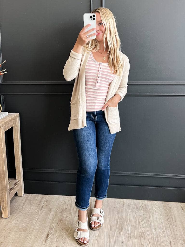 This cute & casual outfit is perfect for everyday wear! Style with jeans and sandals or sneakers.