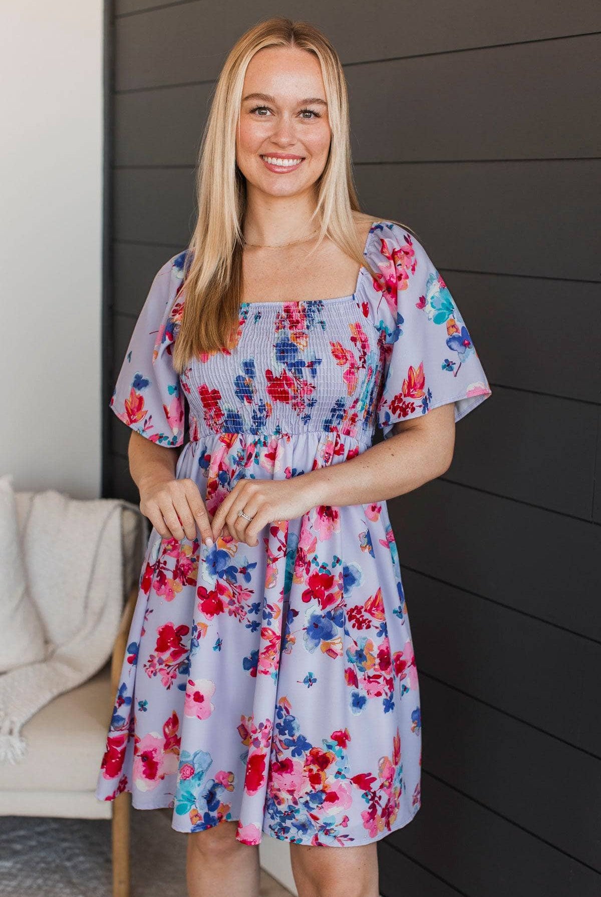 Fulfilling Destinies Floral Mini Dress- Light Indigo & Fuchsia