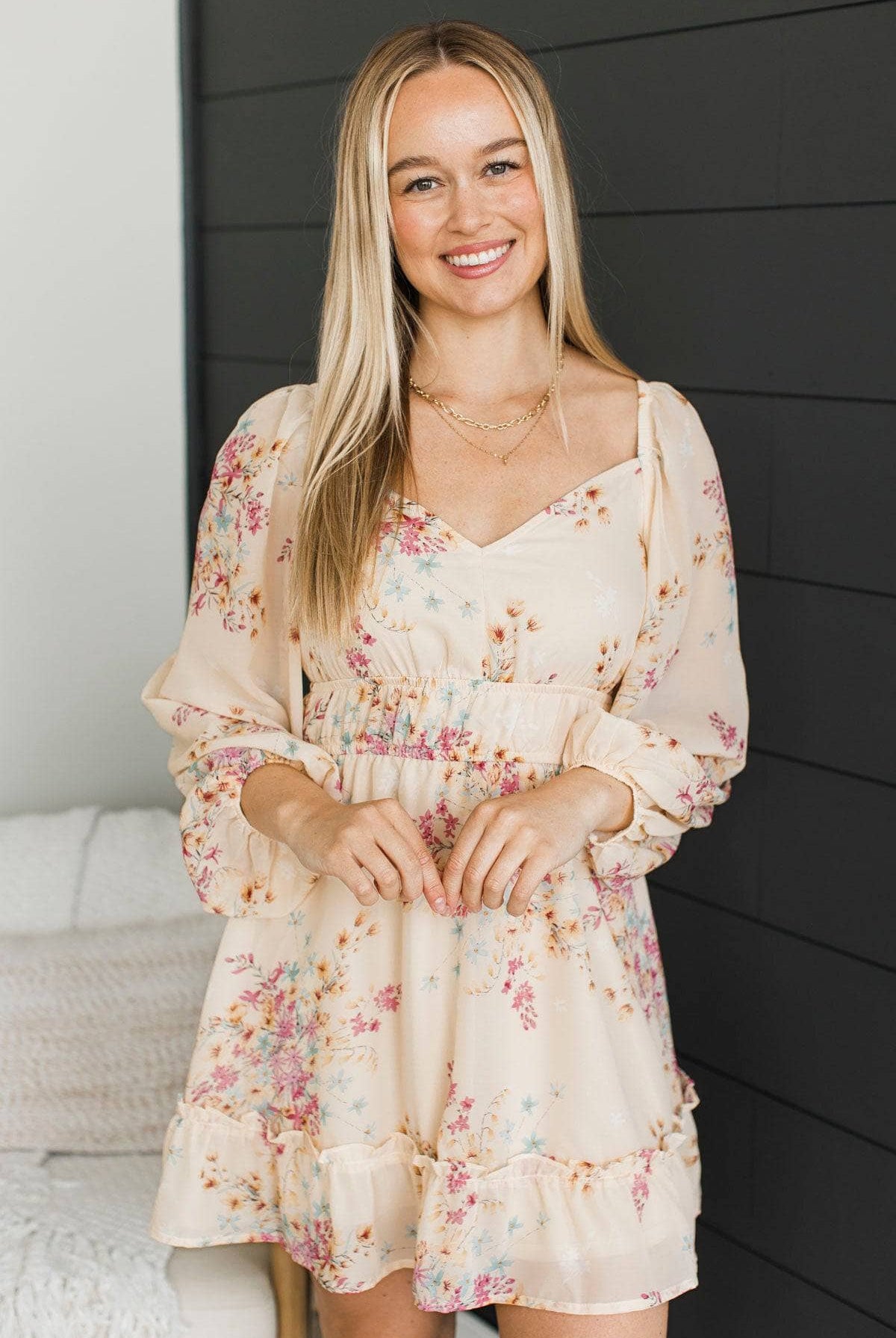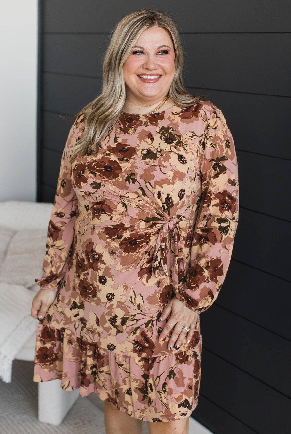 Make Life Sweet Side Tie Floral Dress- Mauve & Brown