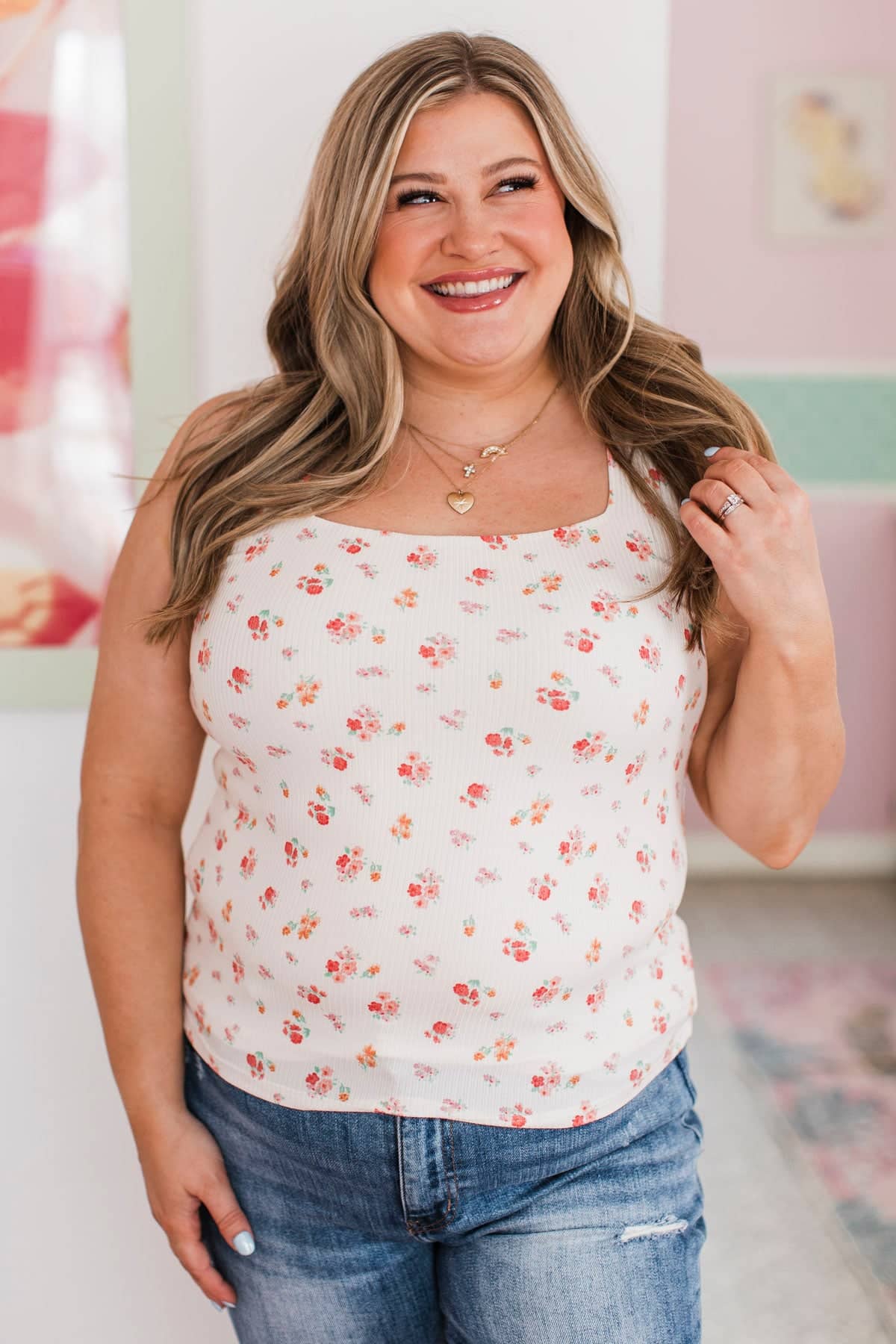 Got Me Blushing Floral Tank Top- Ivory & Coral