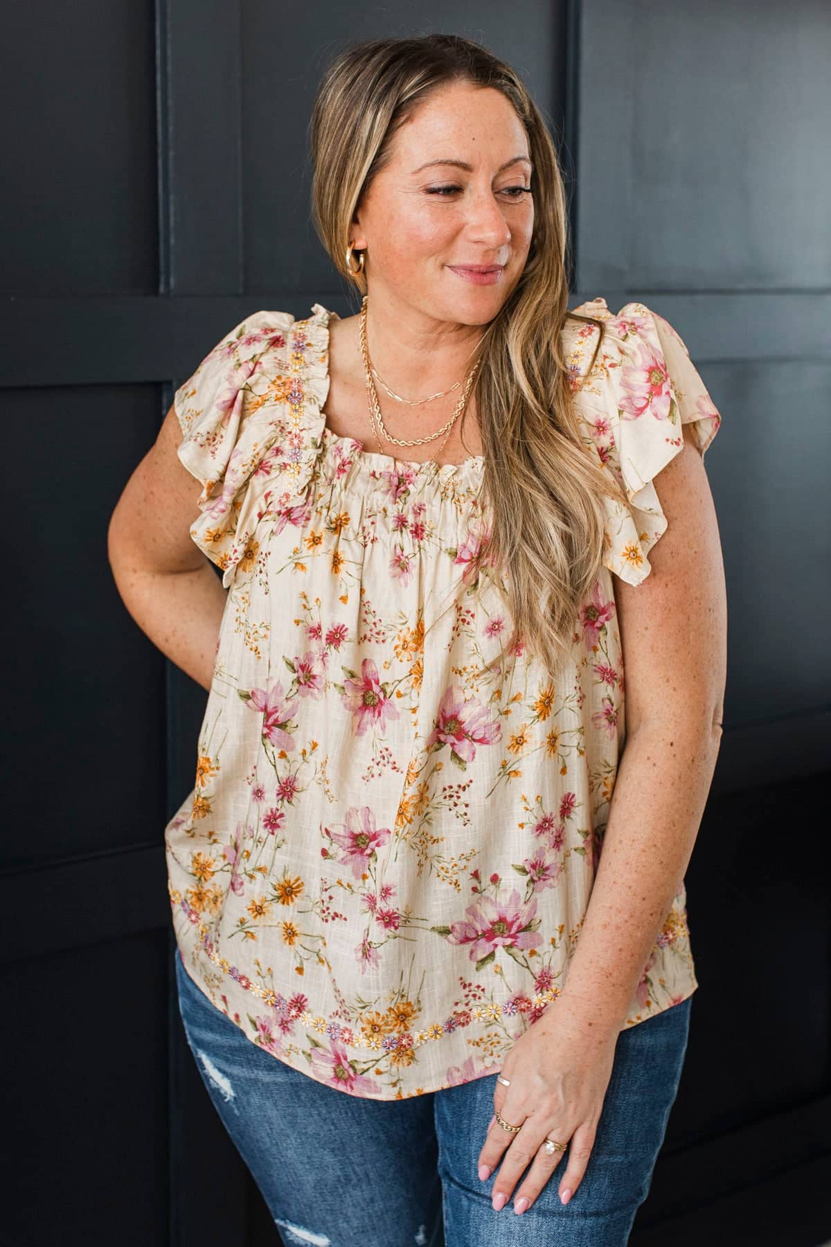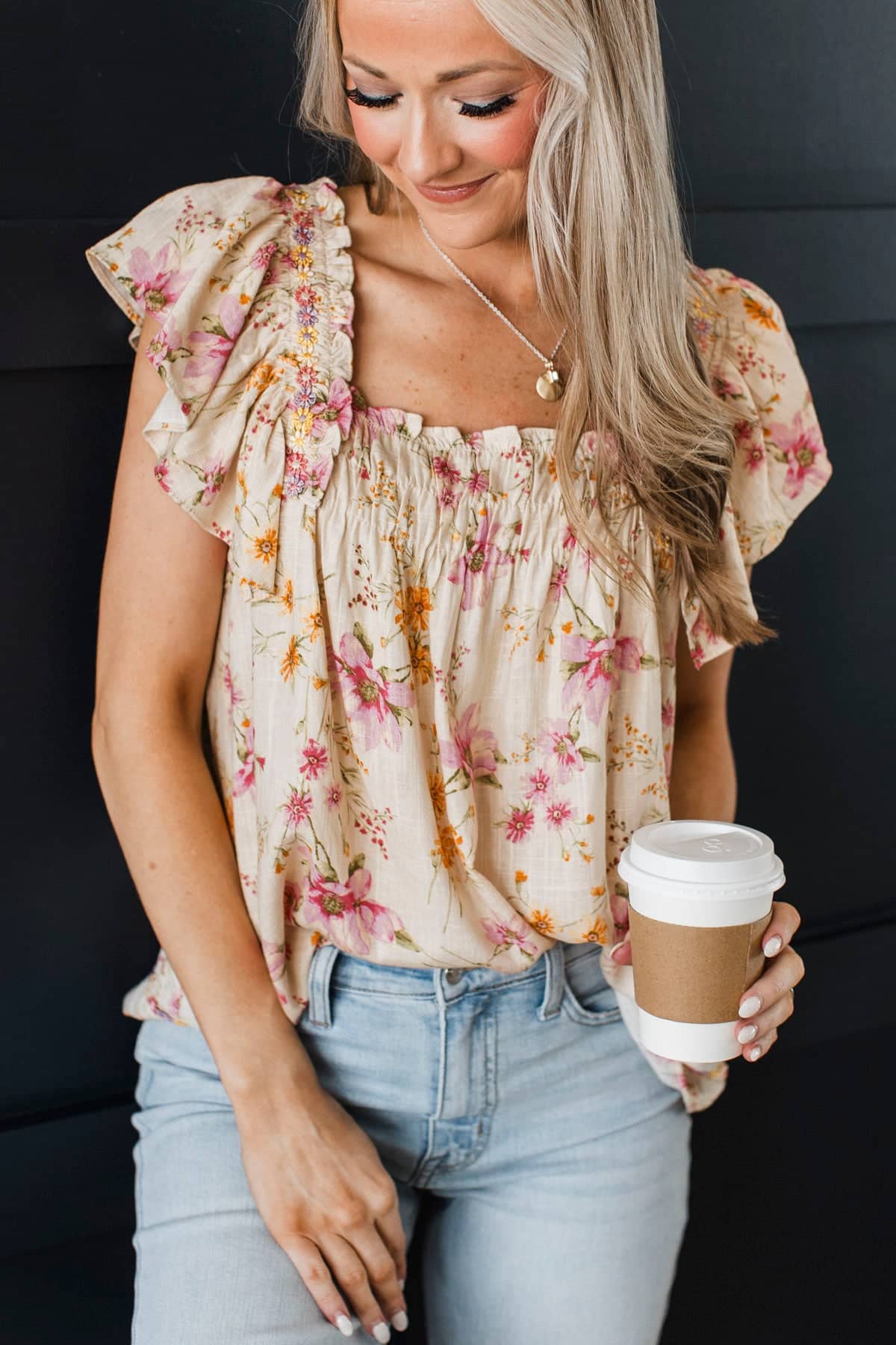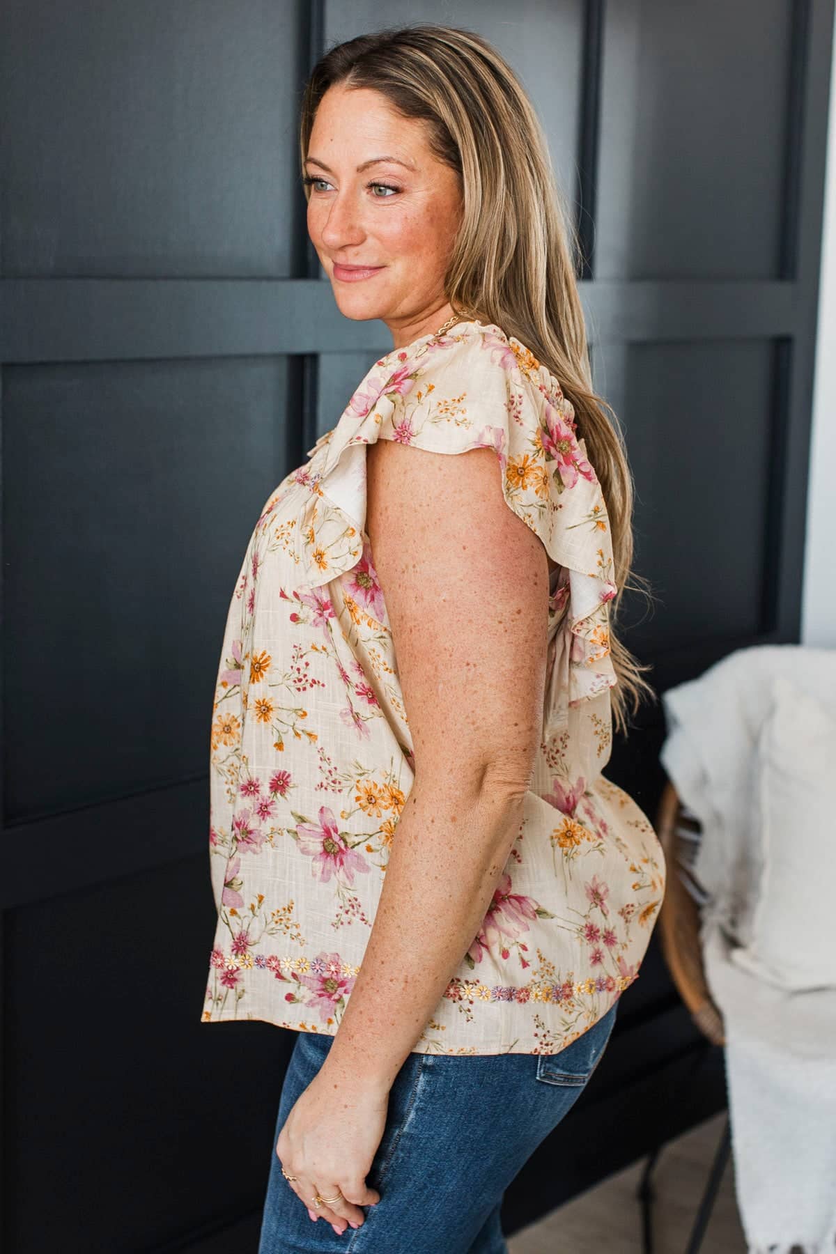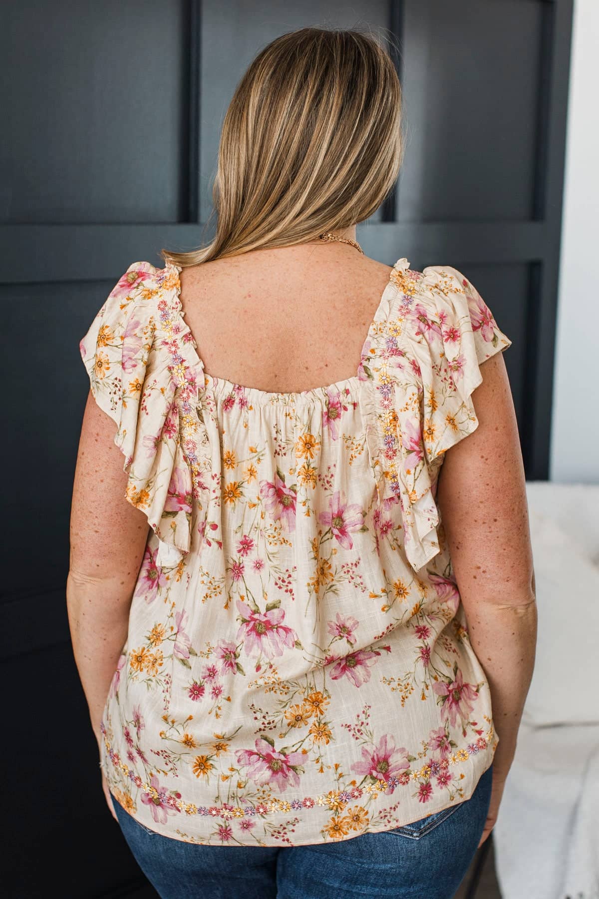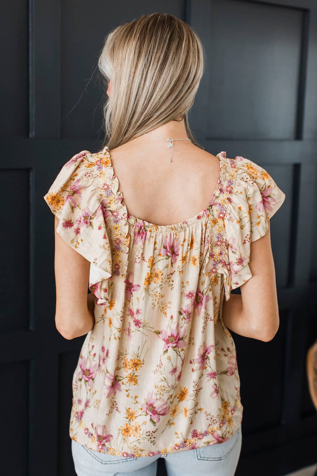 Through The Garden Embroidered Floral Blouse- Natural