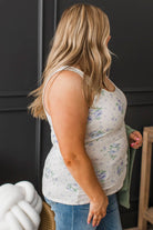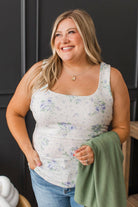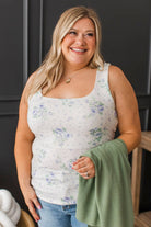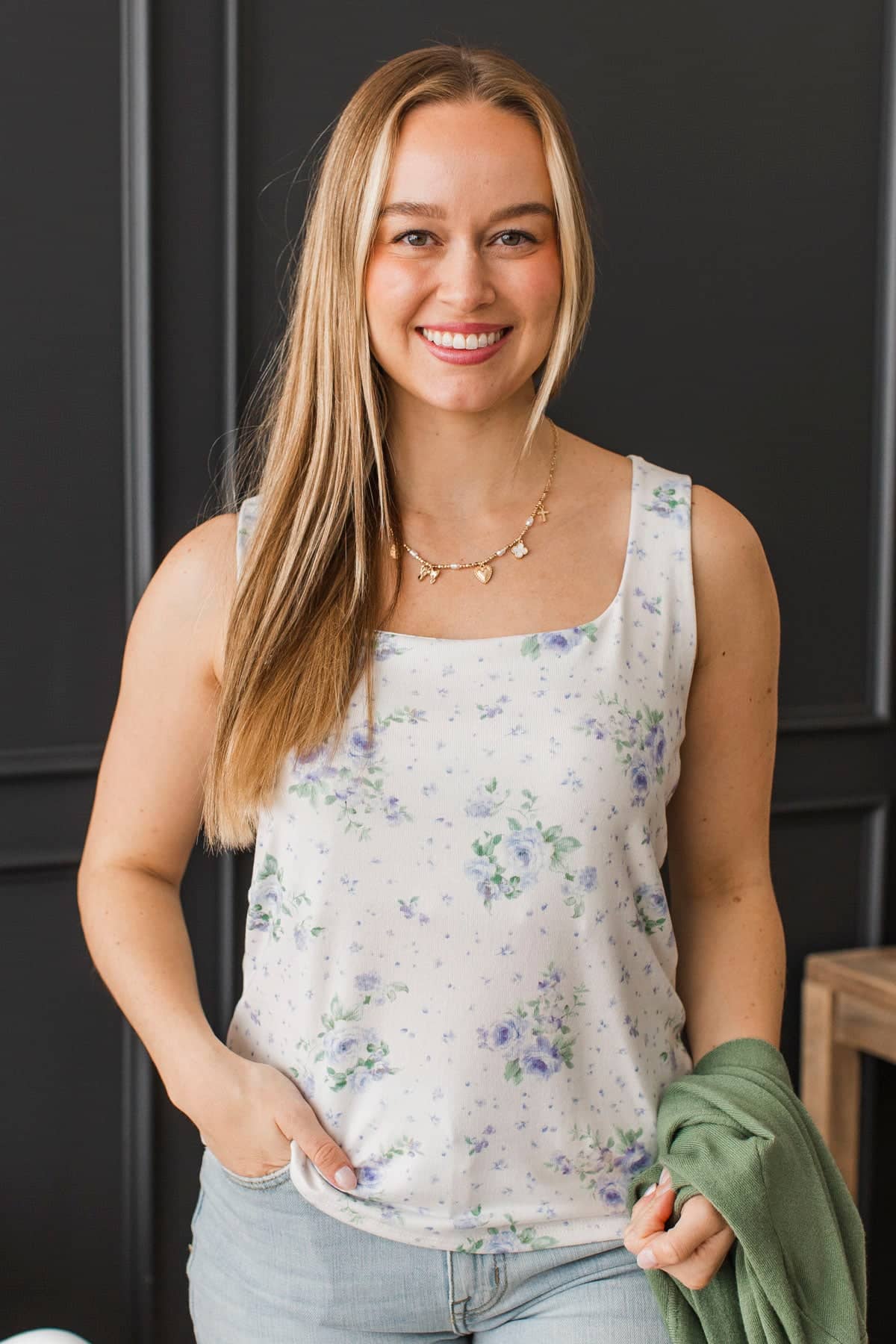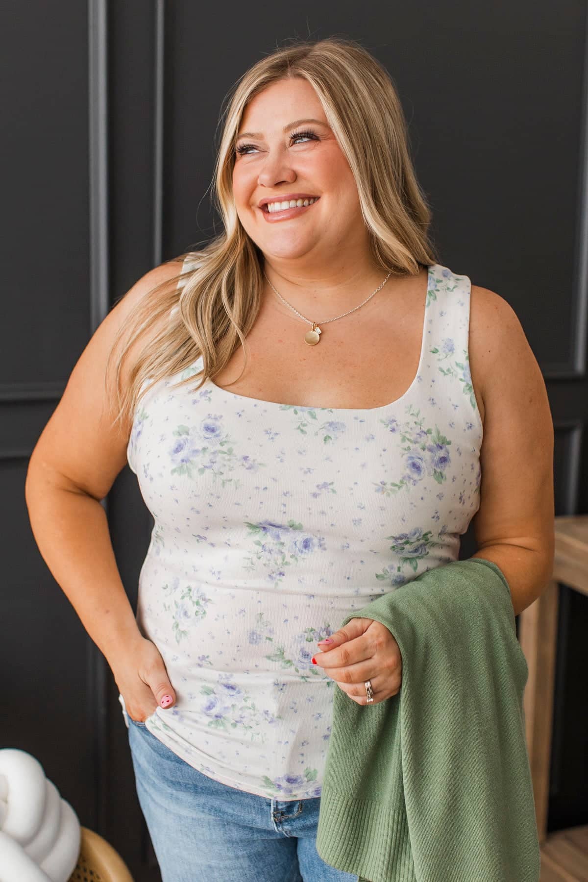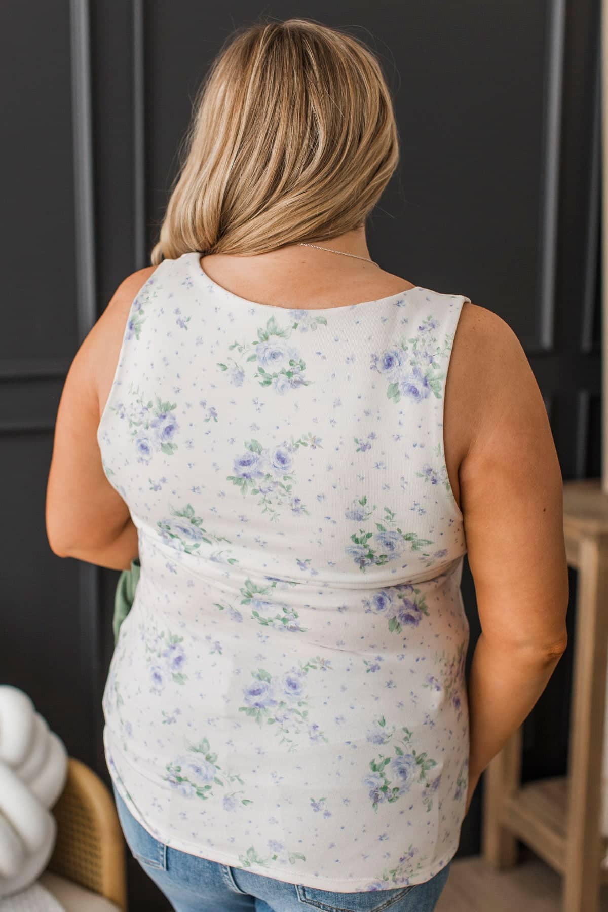 Truly Romantic Floral Tank Top- Ivory & Blue