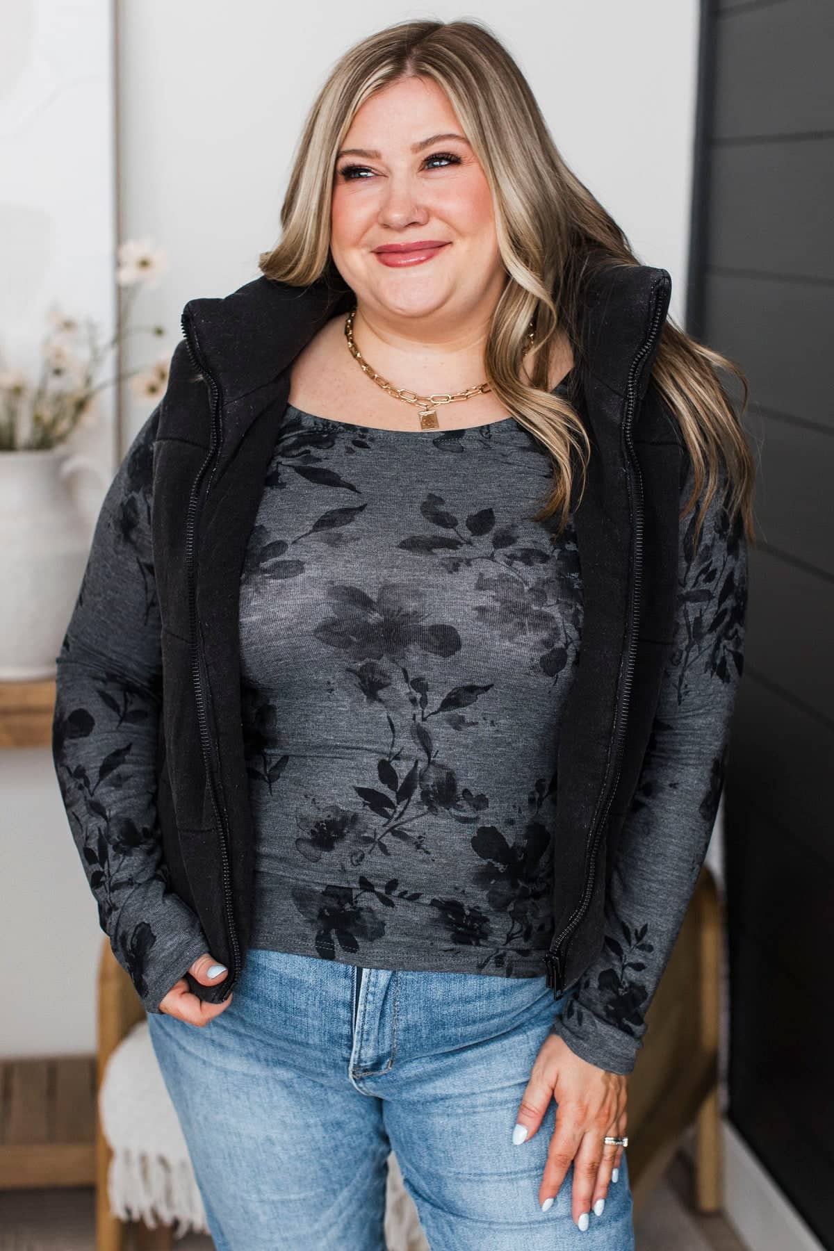 Be Yours Today Stone Wash Puffer Vest- Black