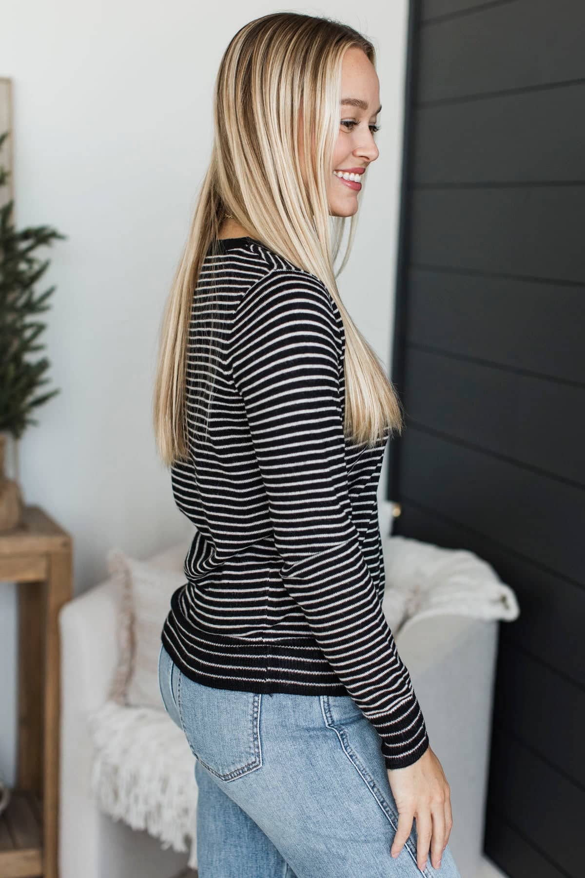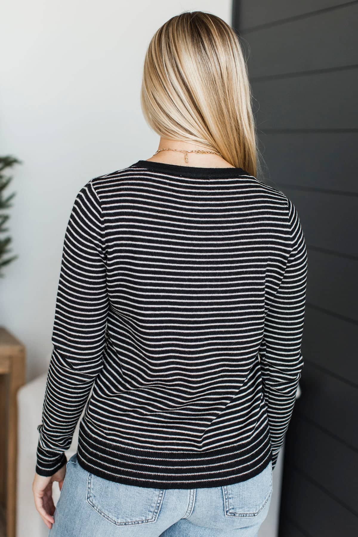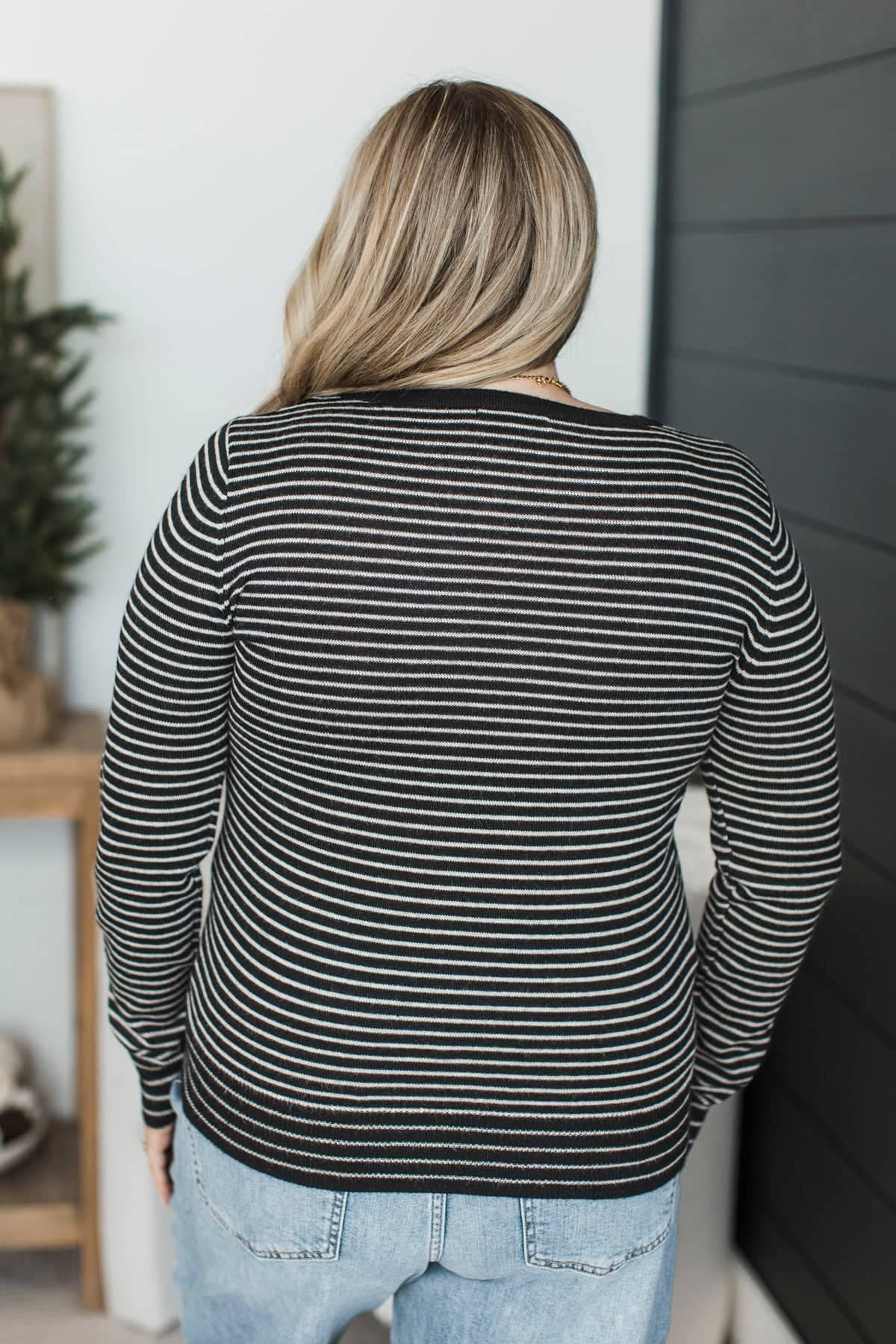 Important Lessons Striped Knit Sweater- Black