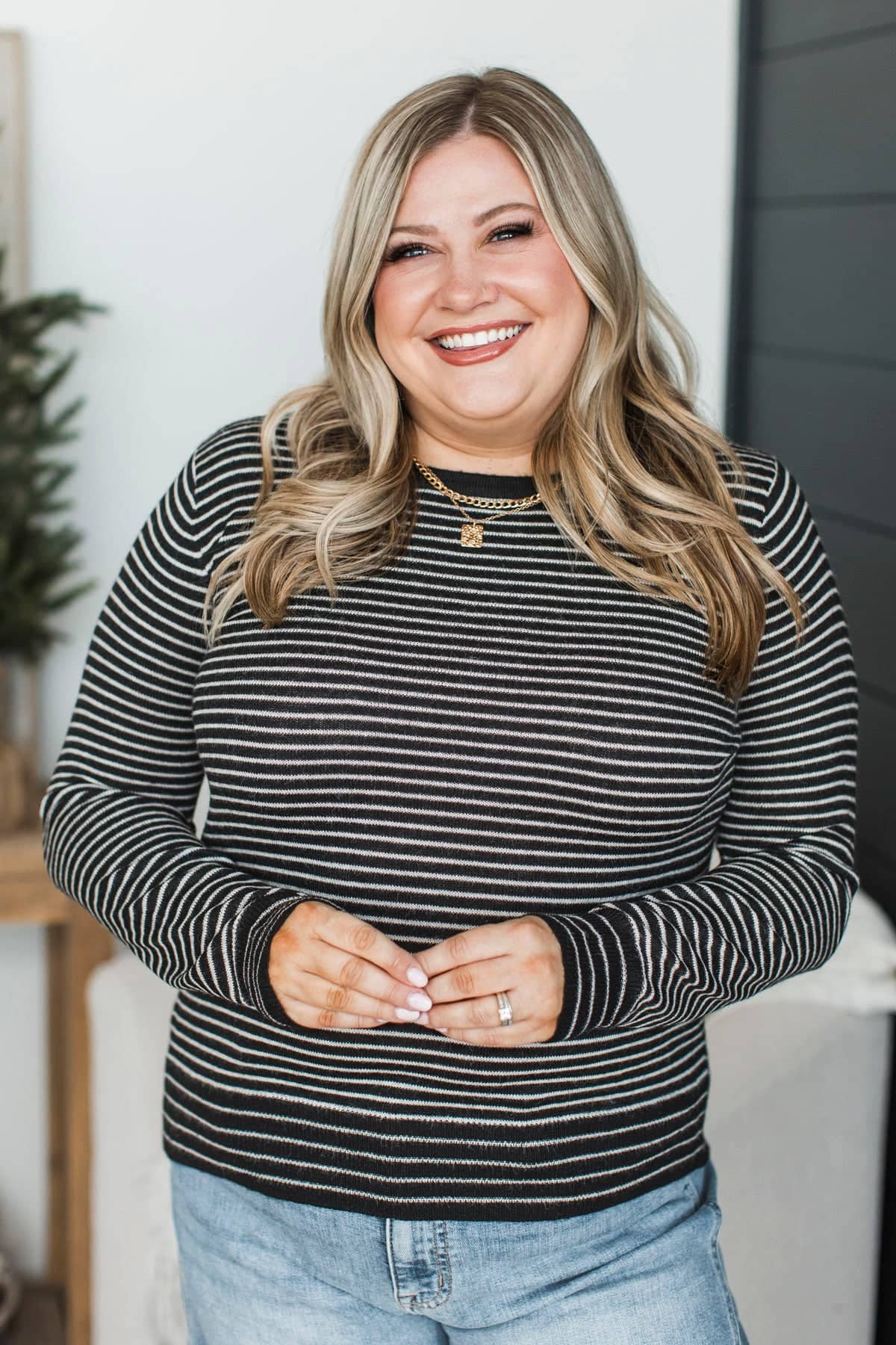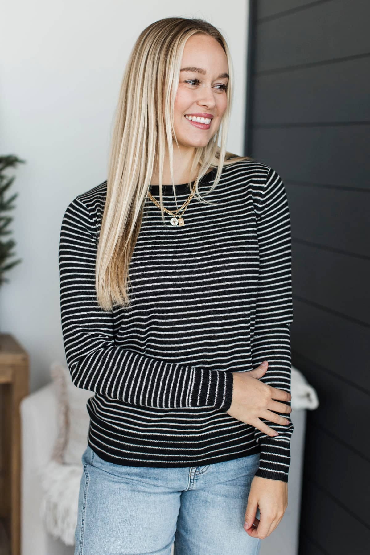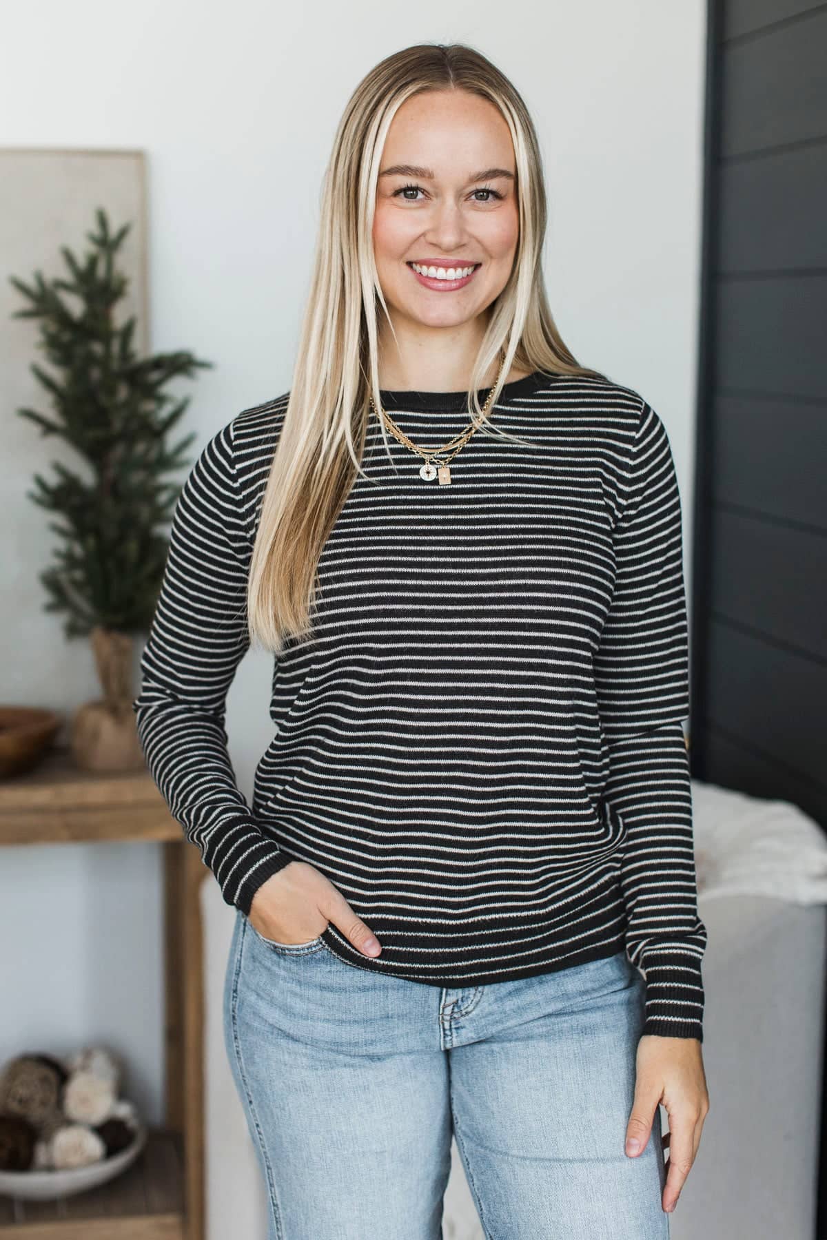 Important Lessons Striped Knit Sweater- Black