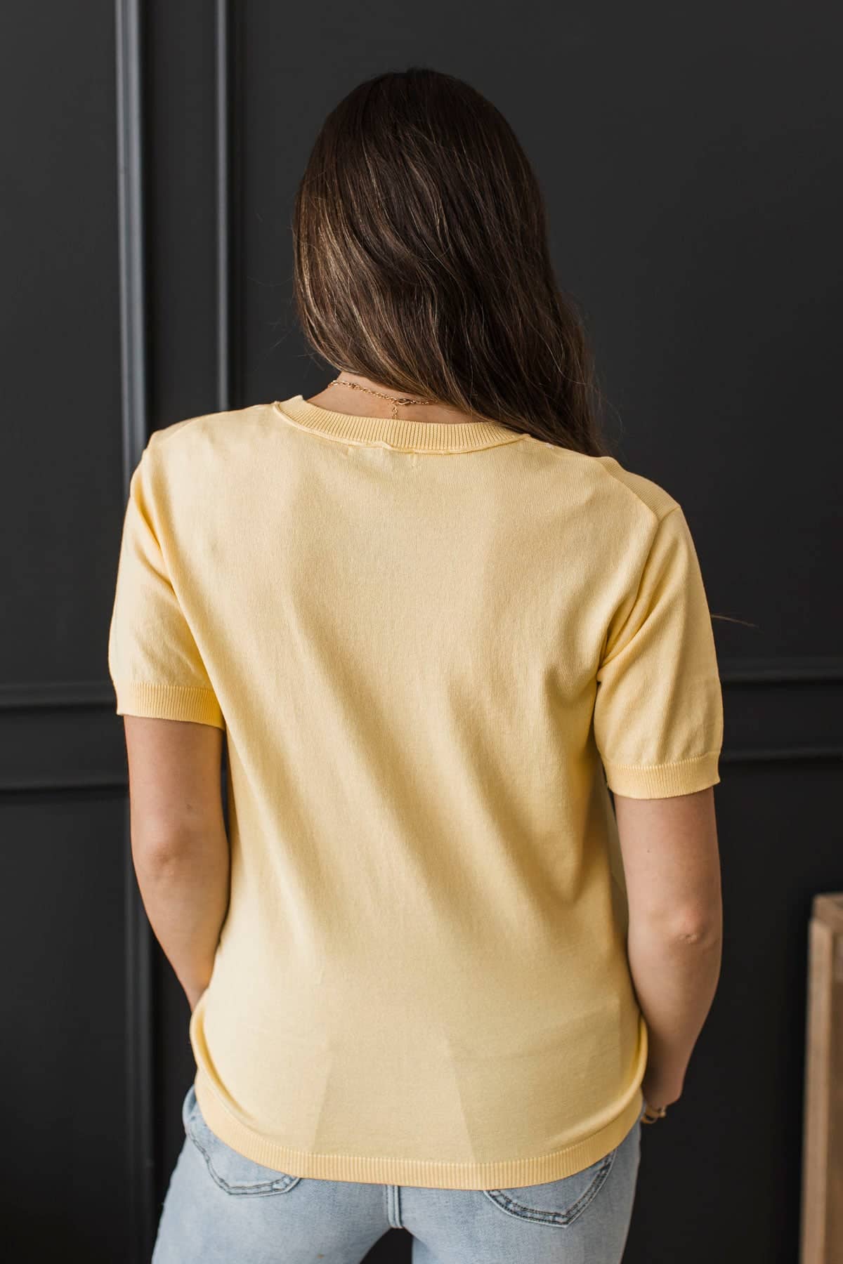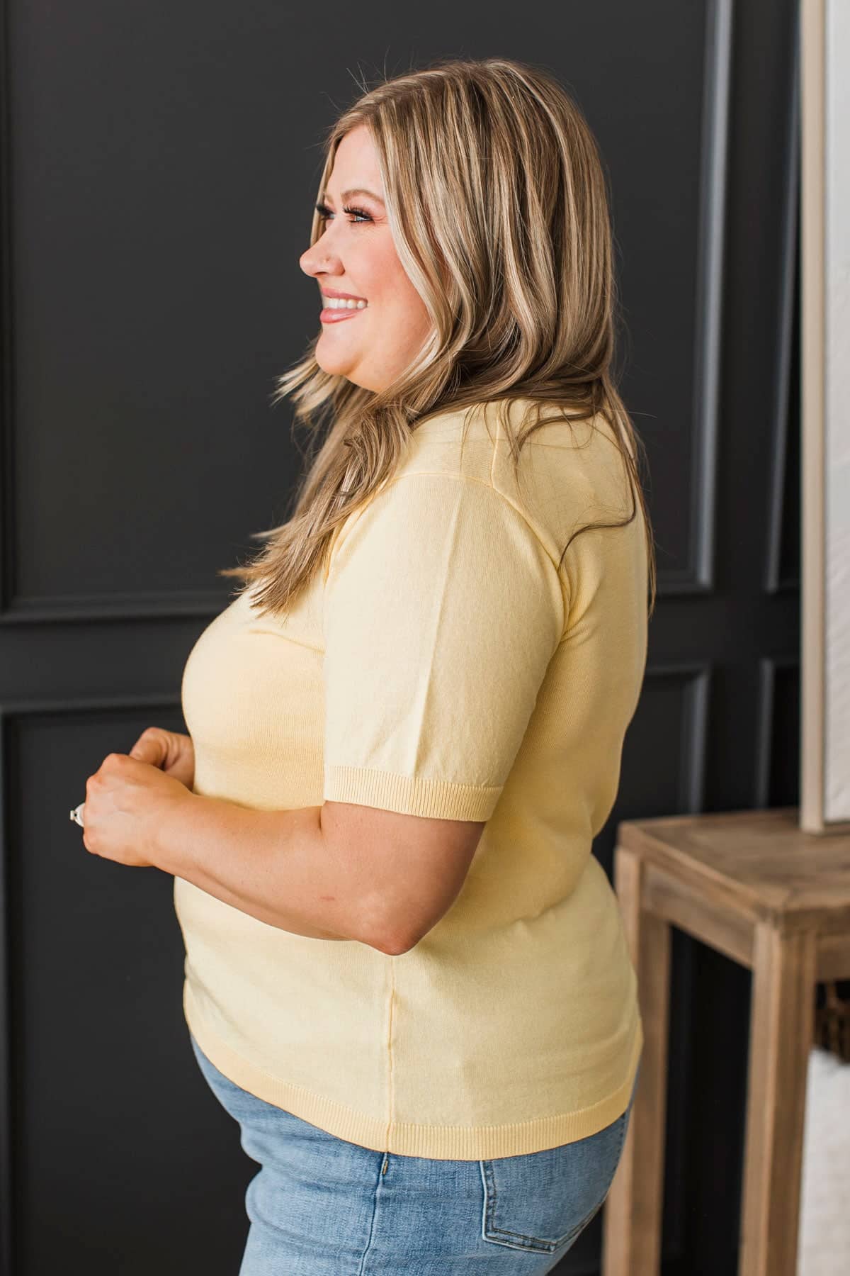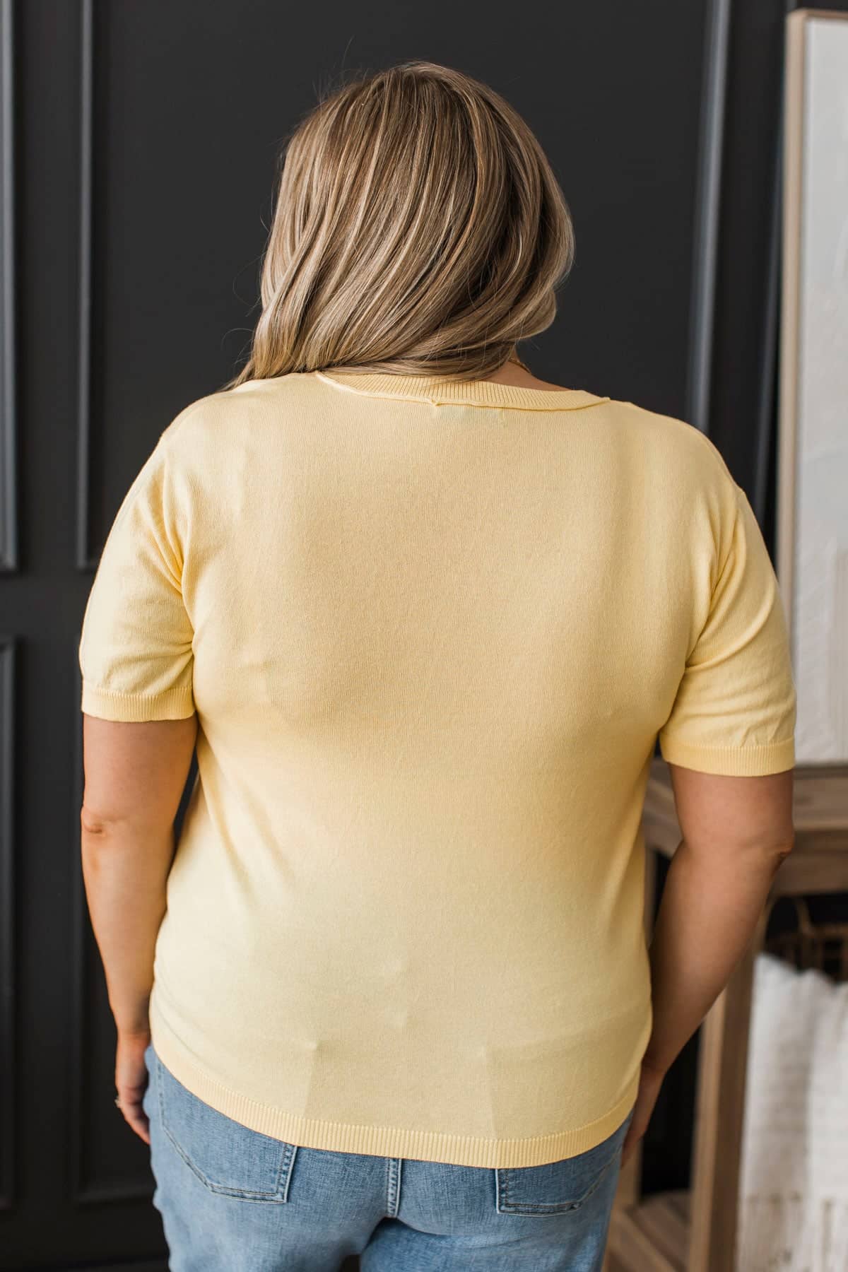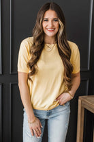 Stay Close Short Sleeve Sweater Top- Lemon