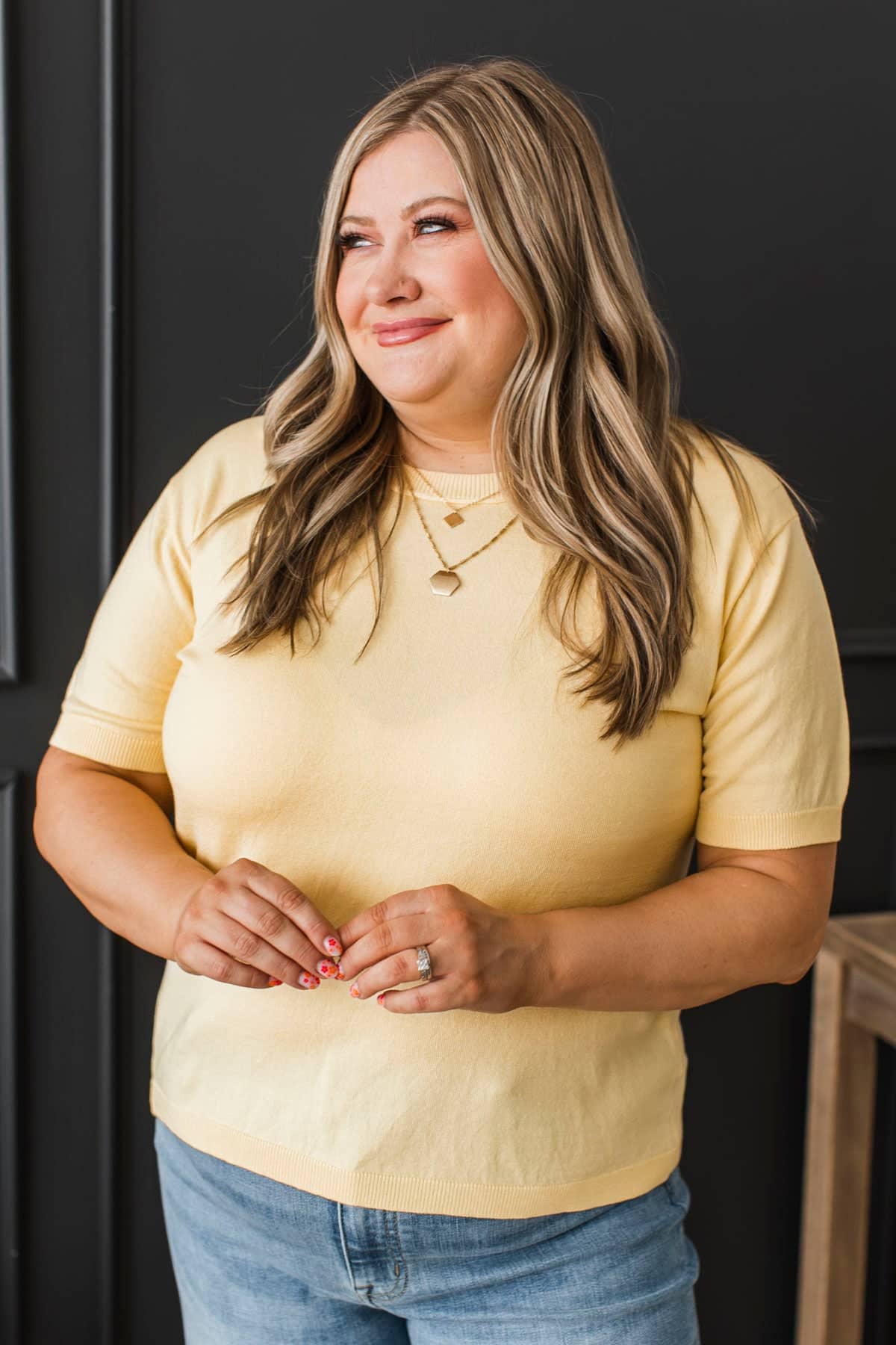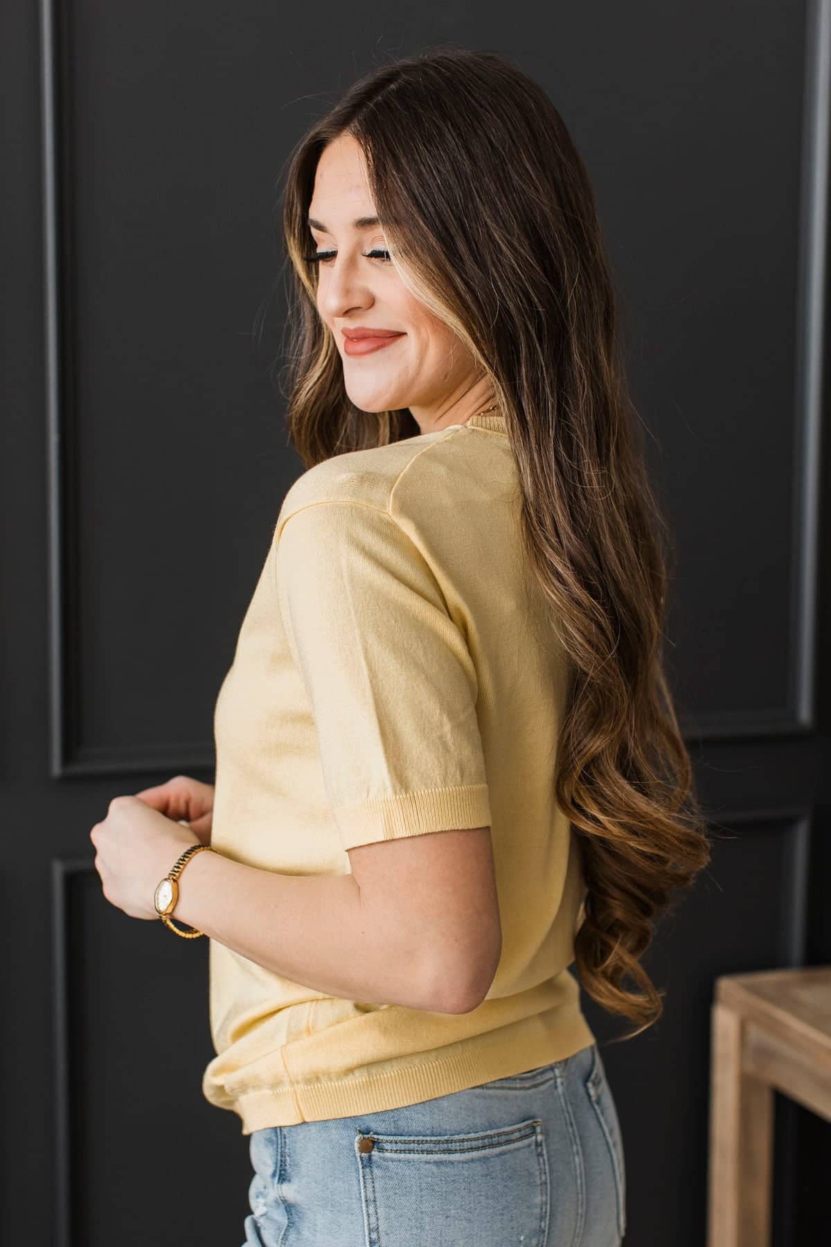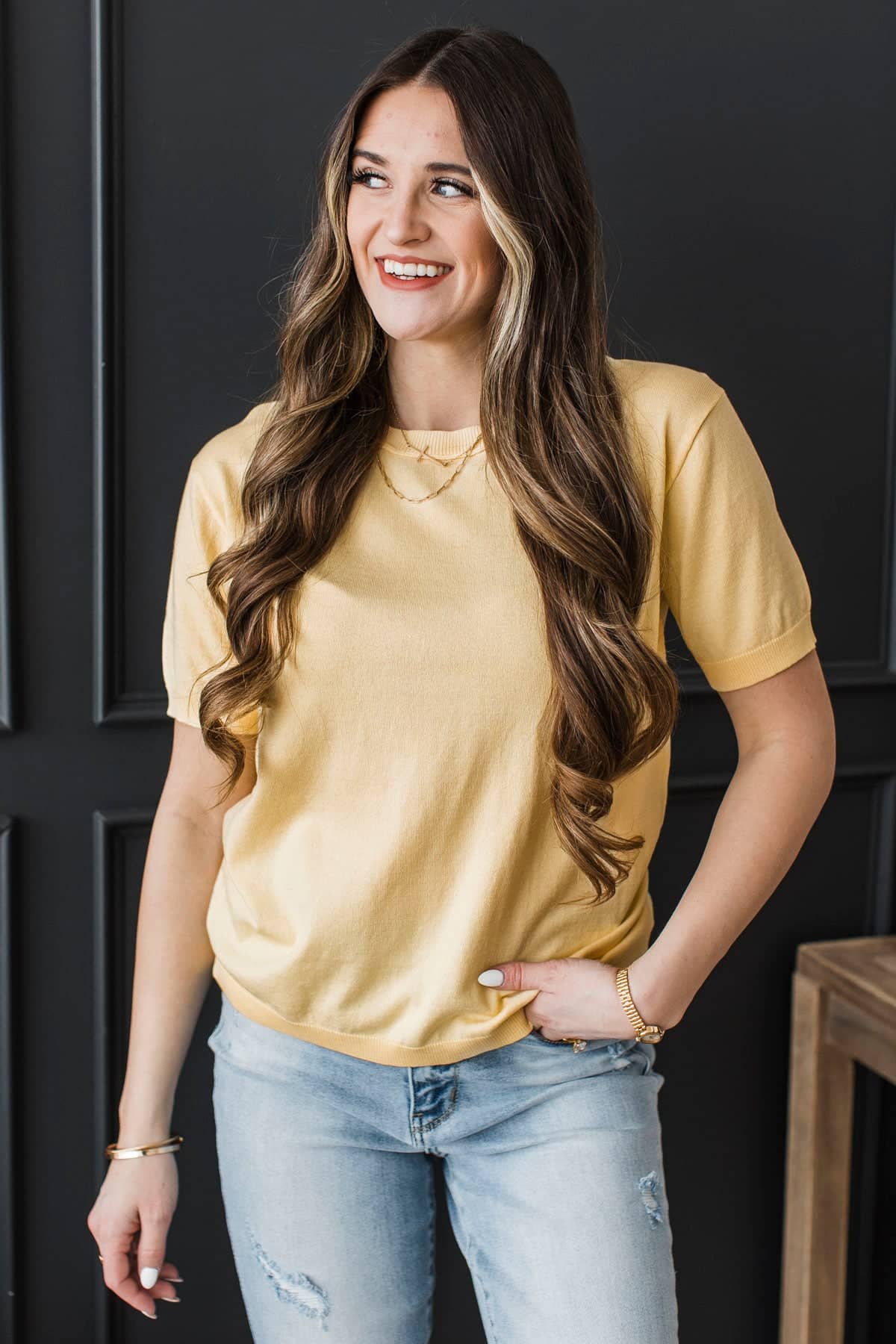 Stay Close Short Sleeve Sweater Top- Lemon
