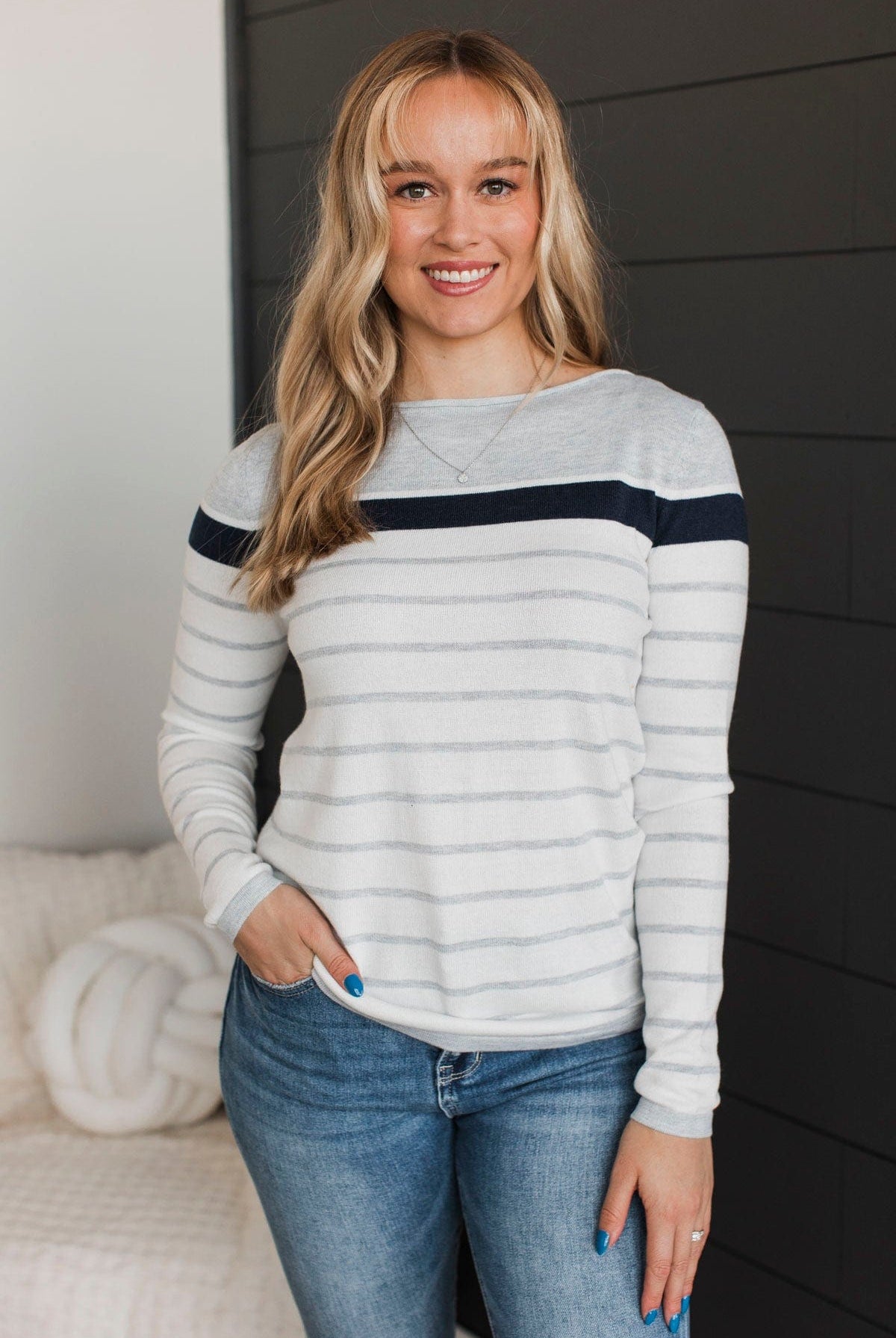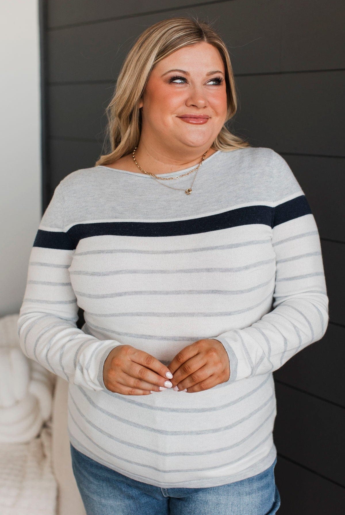 Enchanting Gazes Striped Sweater- Ivory & Chambray
