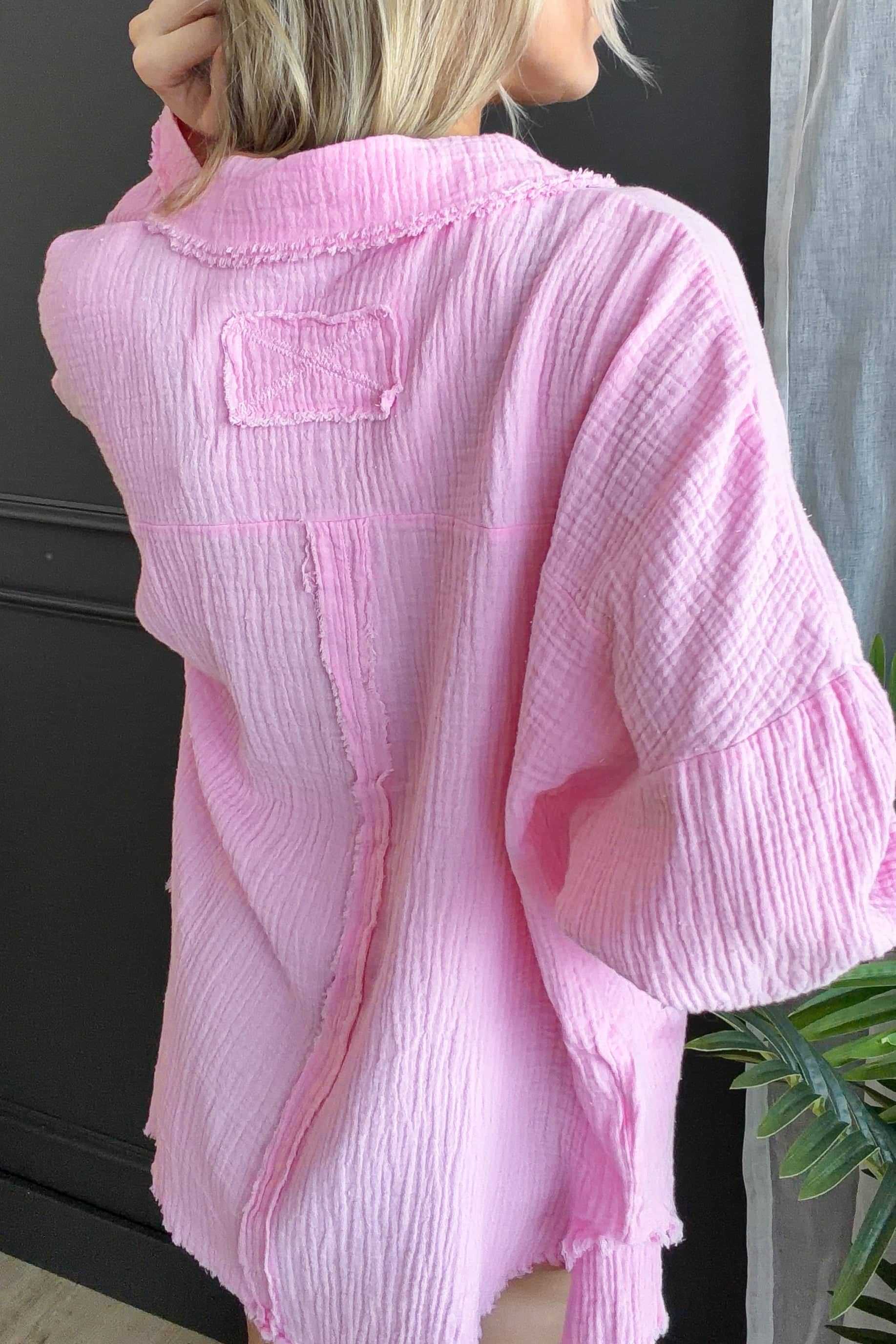 • Lightweight cotton gauze material with frayed edges