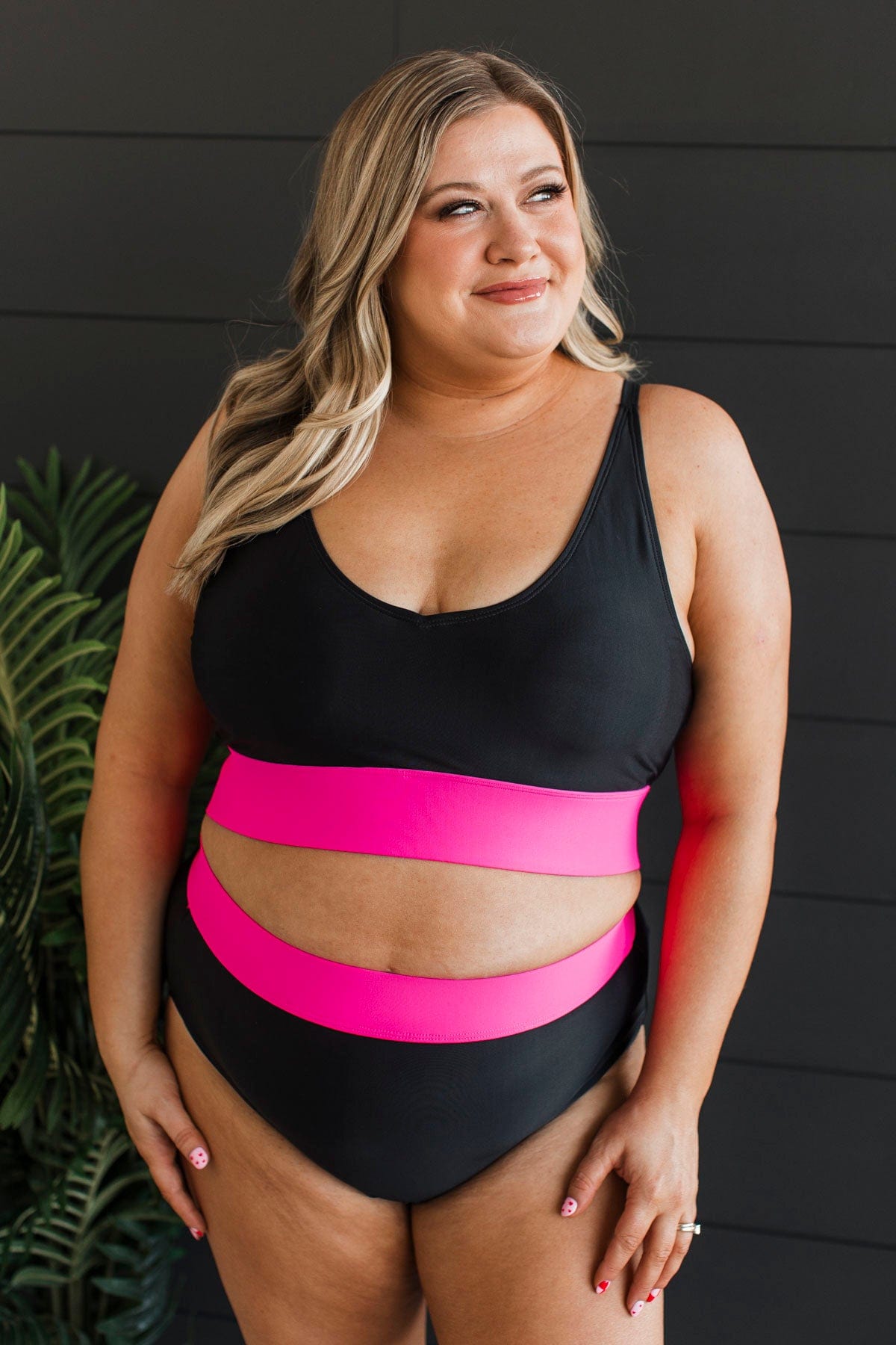 Ray Of Sunshine Swim Bottoms- Black & Neon Pink