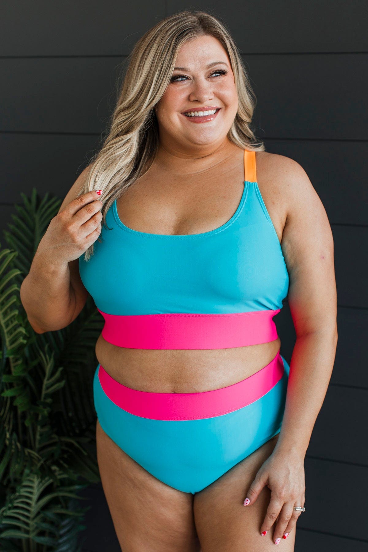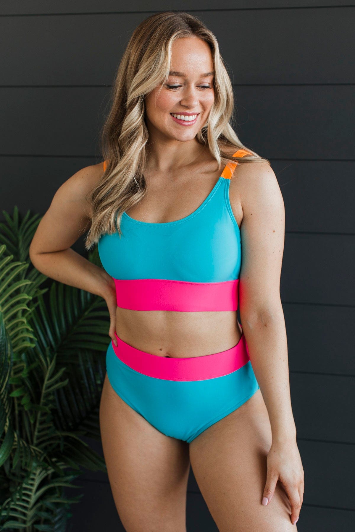 Catching Waves Bikini Swim Top- Blue, Bright Pink, & Orange