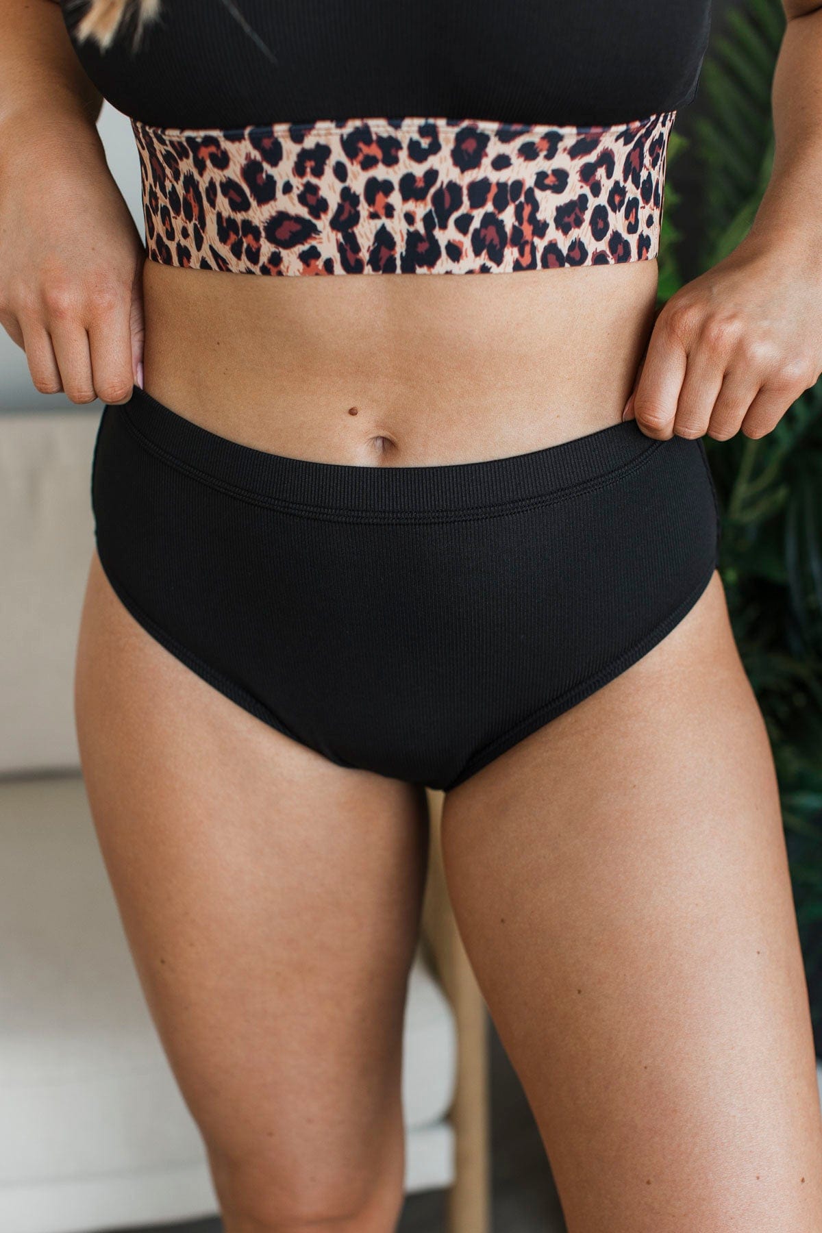 Chasing Tides Ribbed Swim Top- Black & Leopard