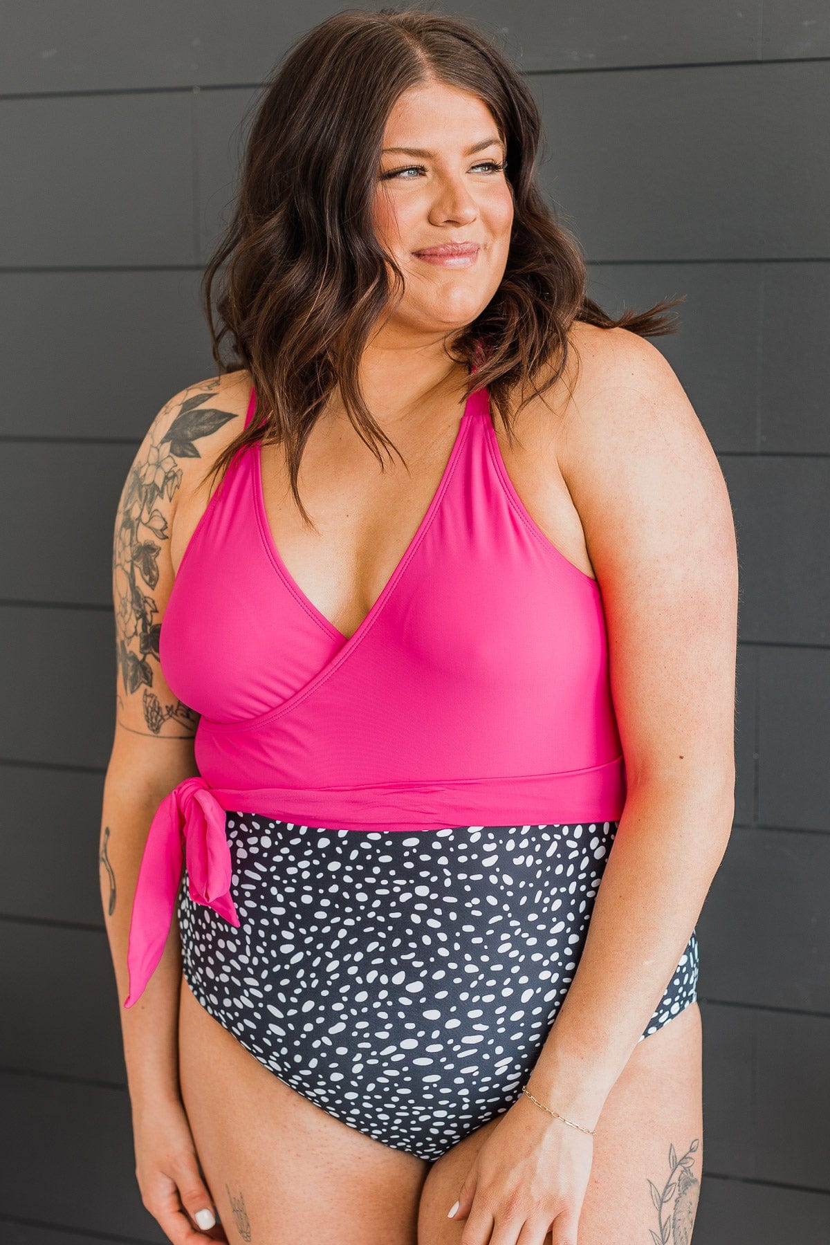 Beach Party One-Piece Swimsuit- Hot Pink & Black Spotted