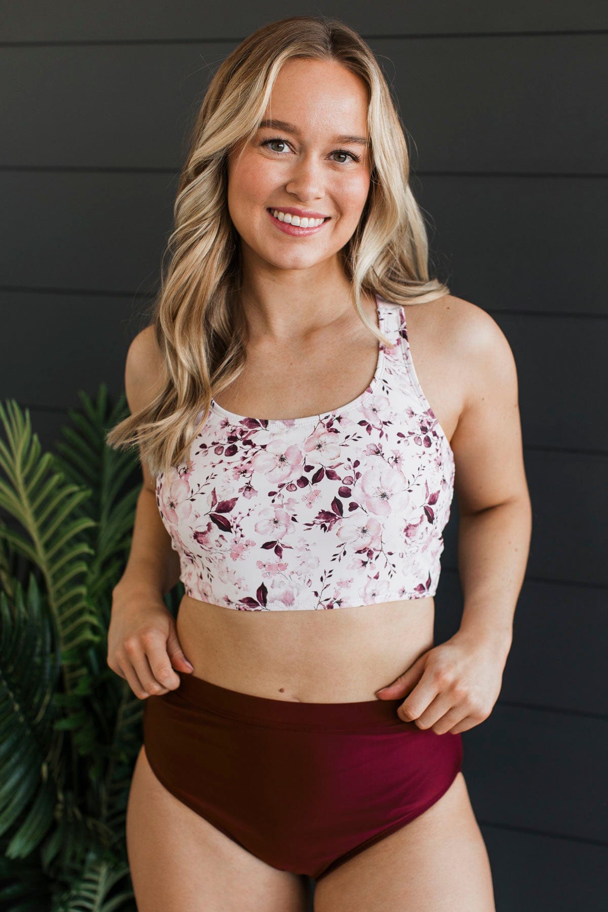 Along The Boardwalk Swim Top- Burgundy Floral
