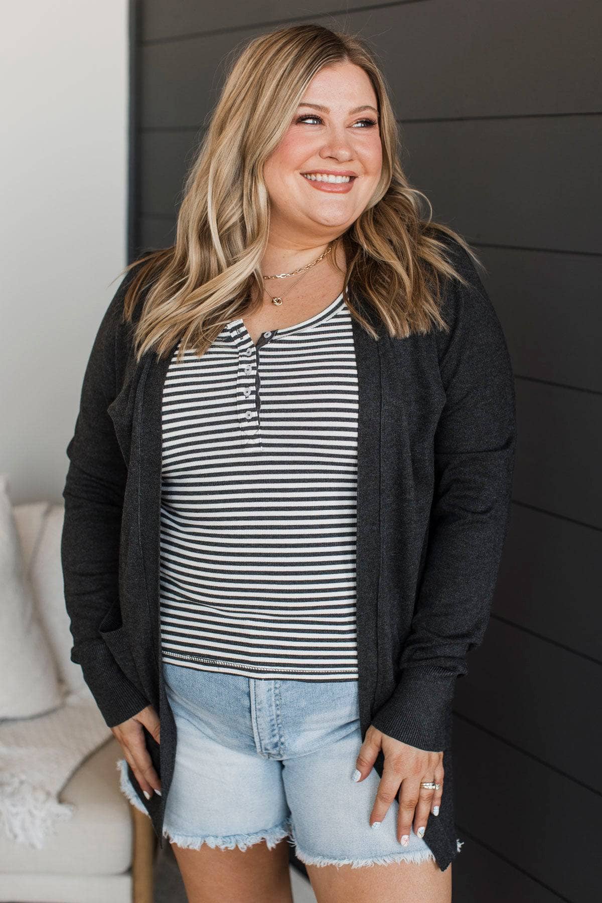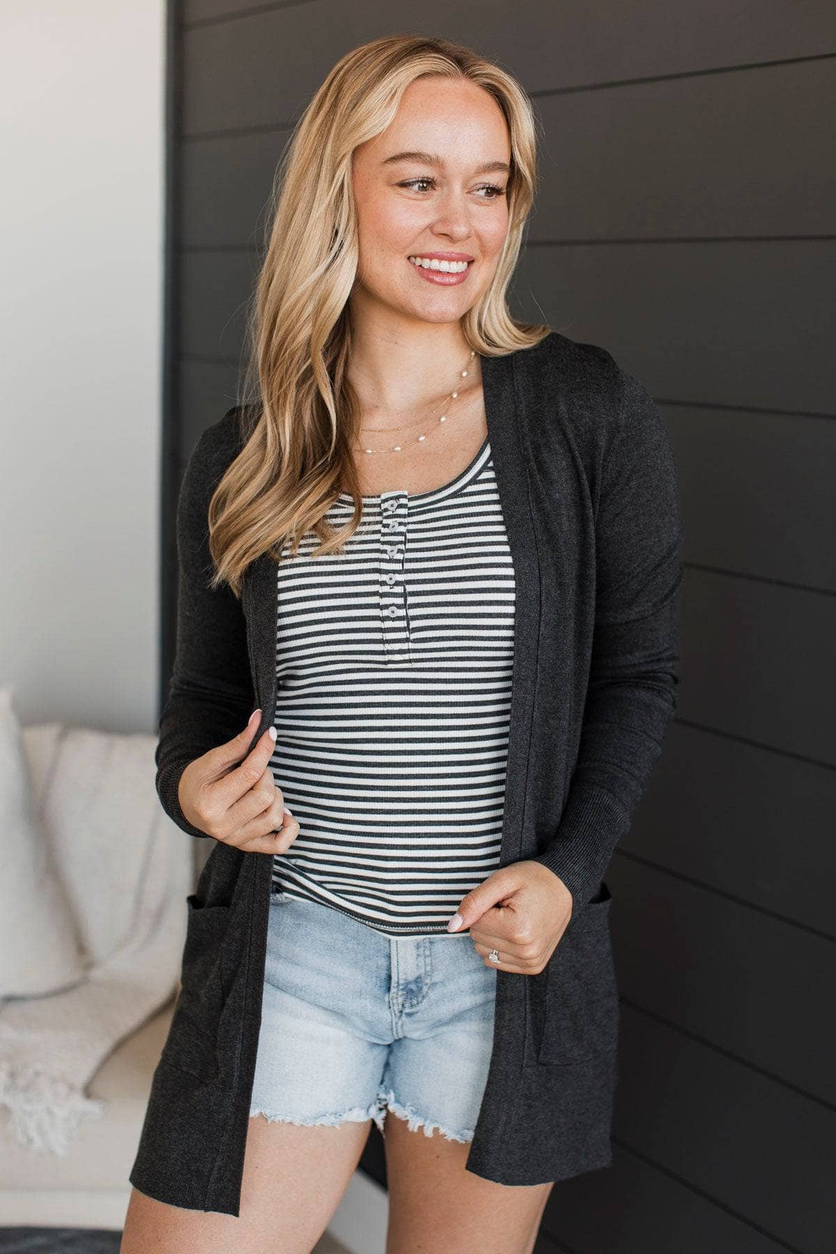 Can't Resist This Knit Cardigan- Heather Charcoal