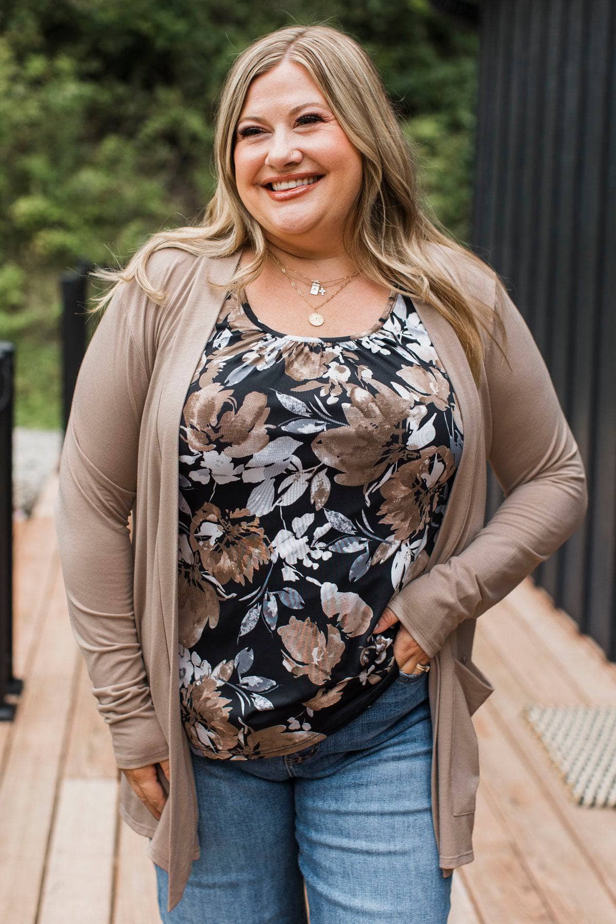 Love this tank top! It is super cute, soft and love that it is lined. It is Fall in Montana and with the matching cardigan that it light, the lining on the tank makes it perfect!