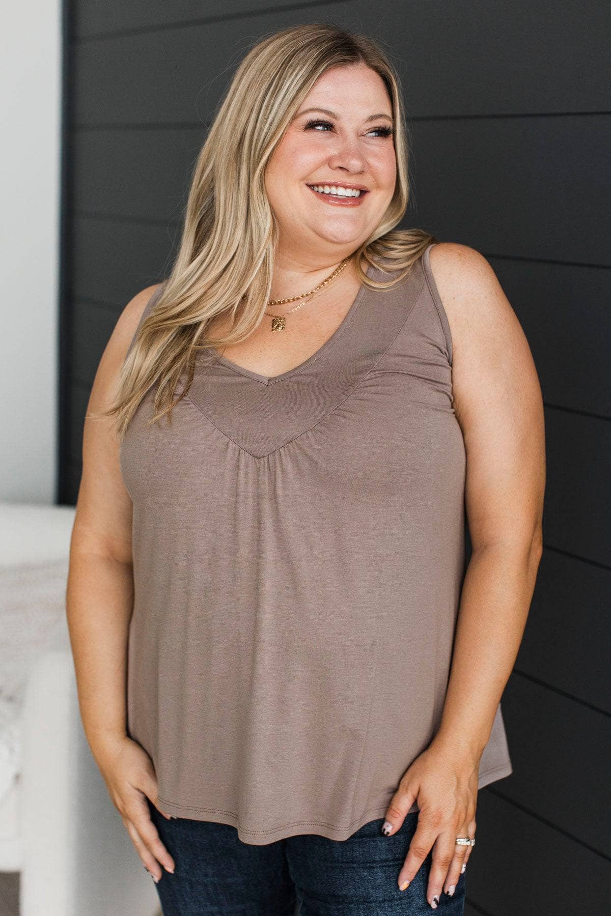Everything You Have V-Neck Tank Top- Mocha