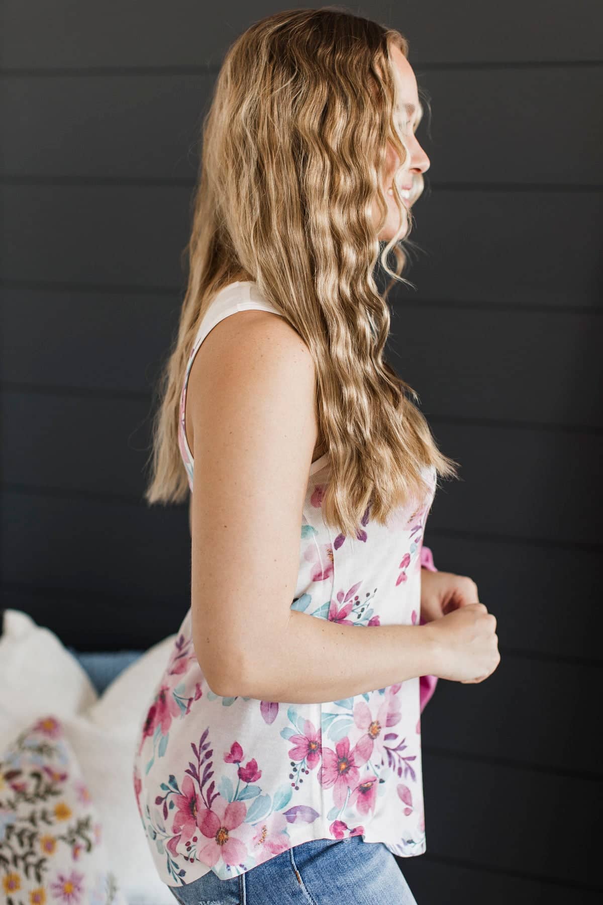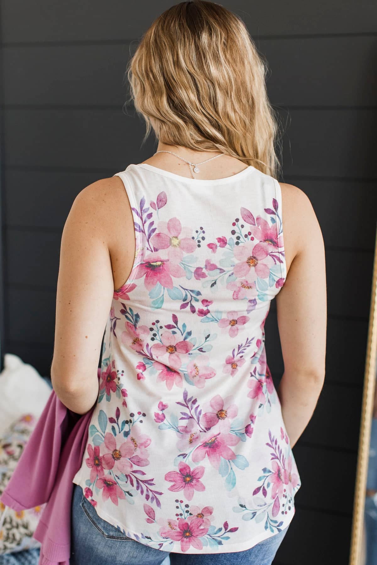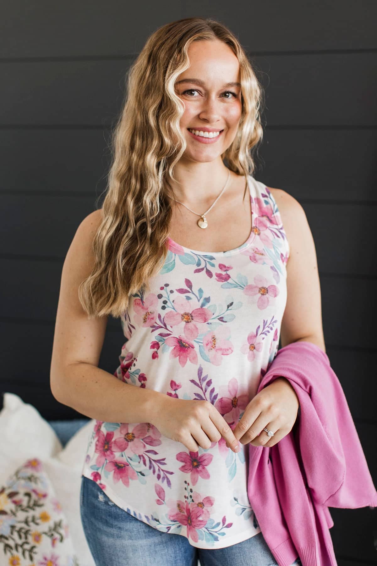 Exist Loudly Floral Tank Top- Ivory & Pink