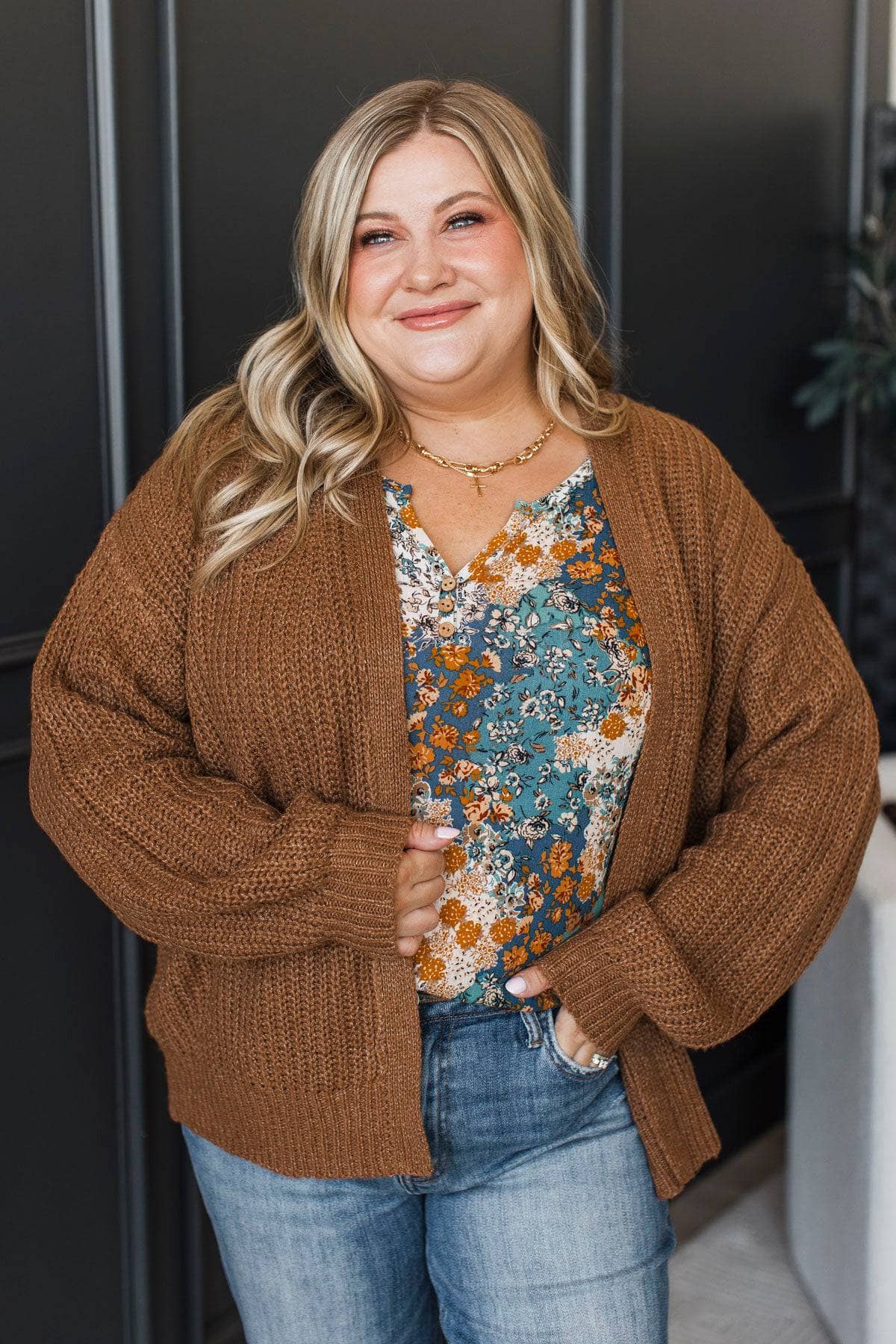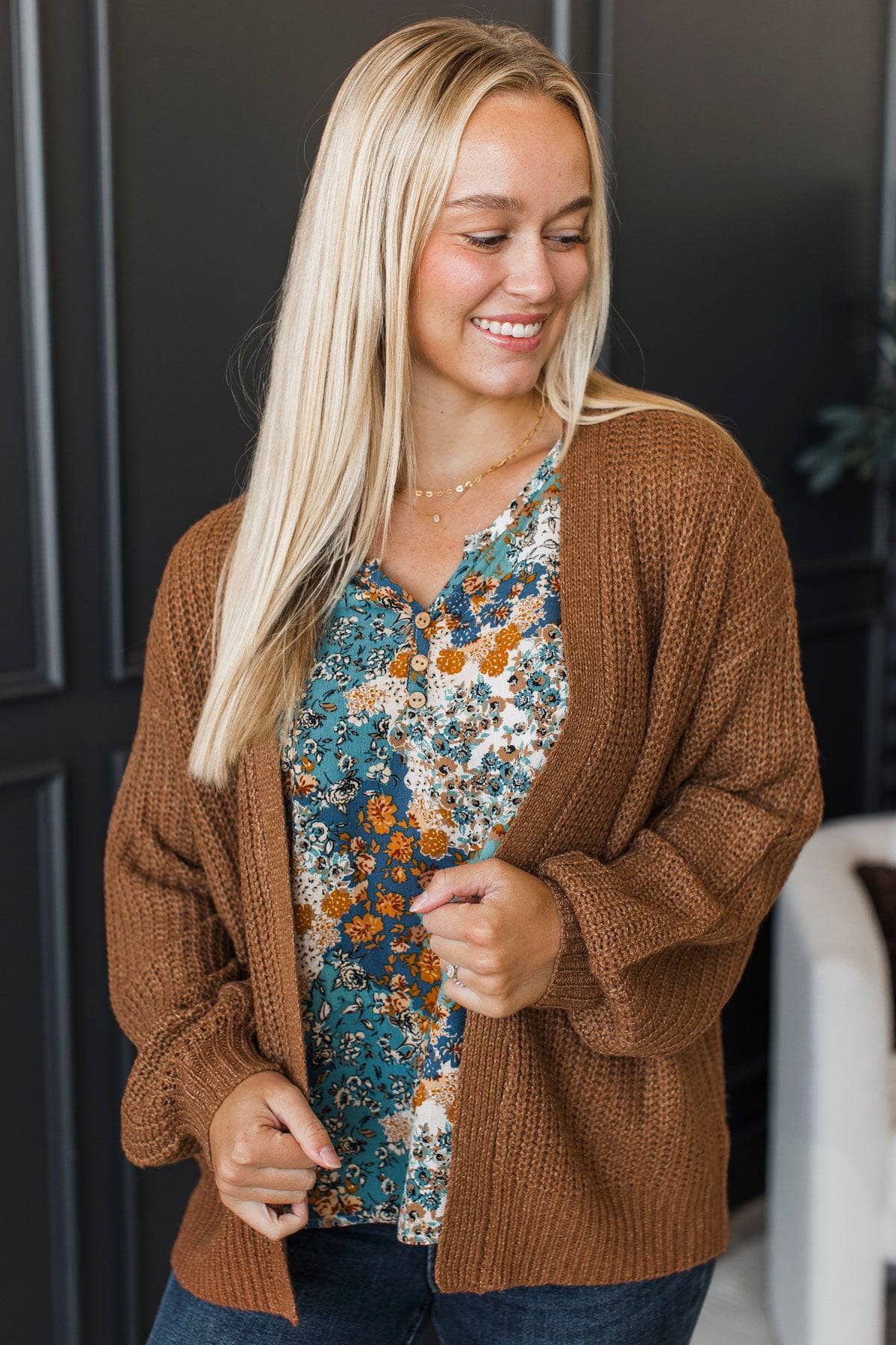 Everyday Magic Open Front Knit Cardigan- Camel