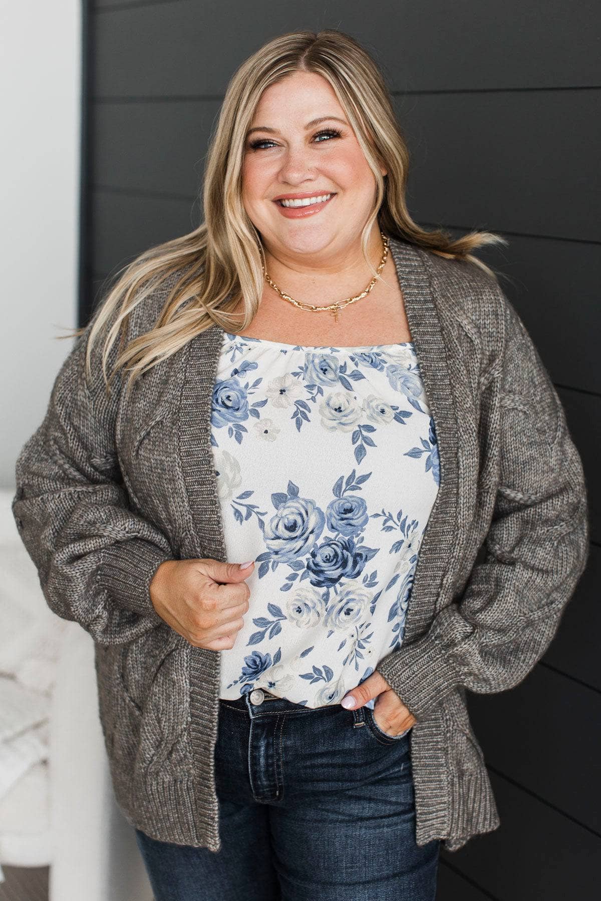 Laugh Out Loud Floral Tank Top- Ivory & Blue