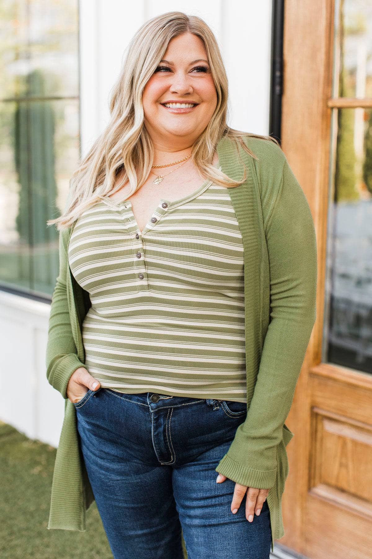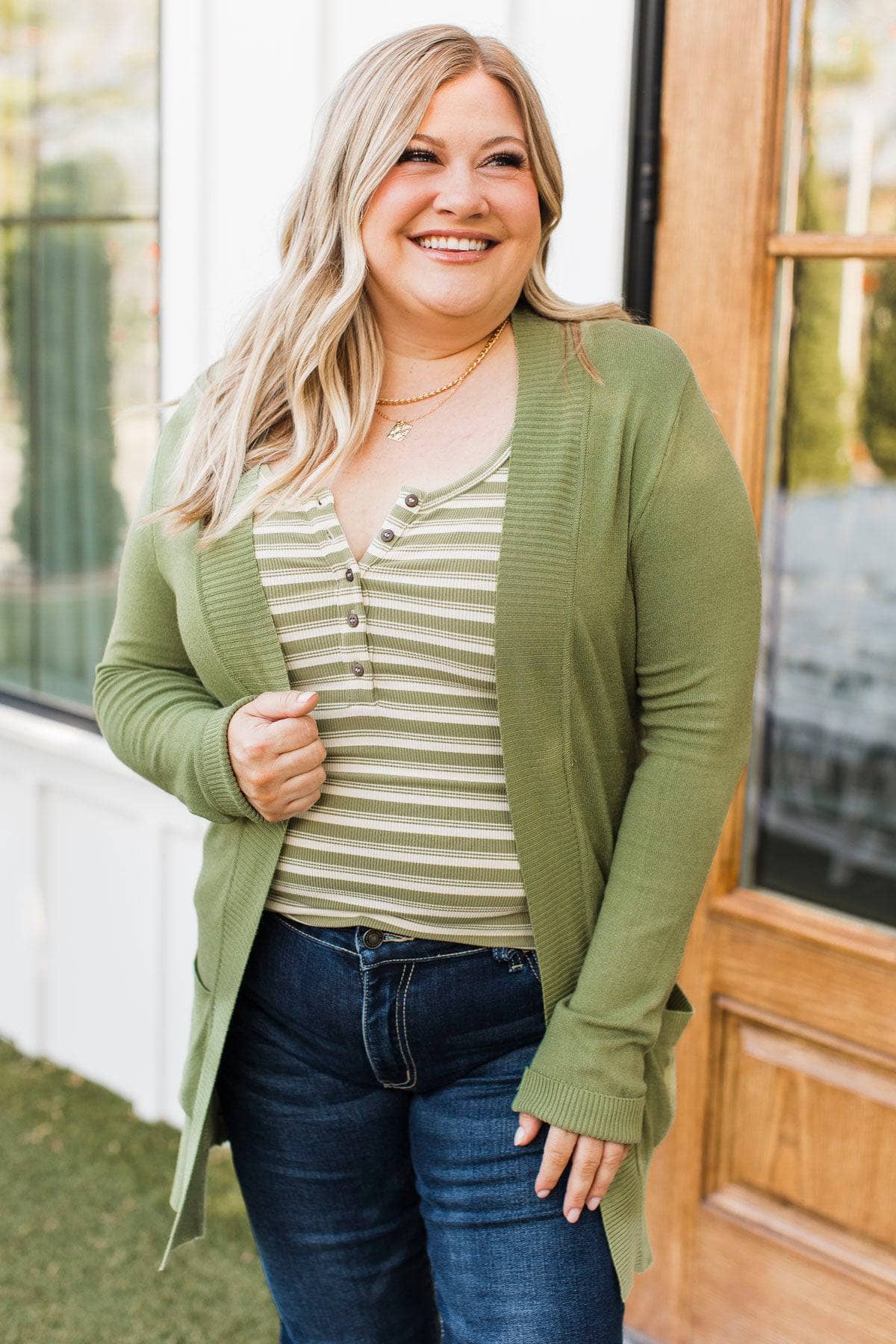 Comfortable With Myself Knit Cardigan- Moss Green