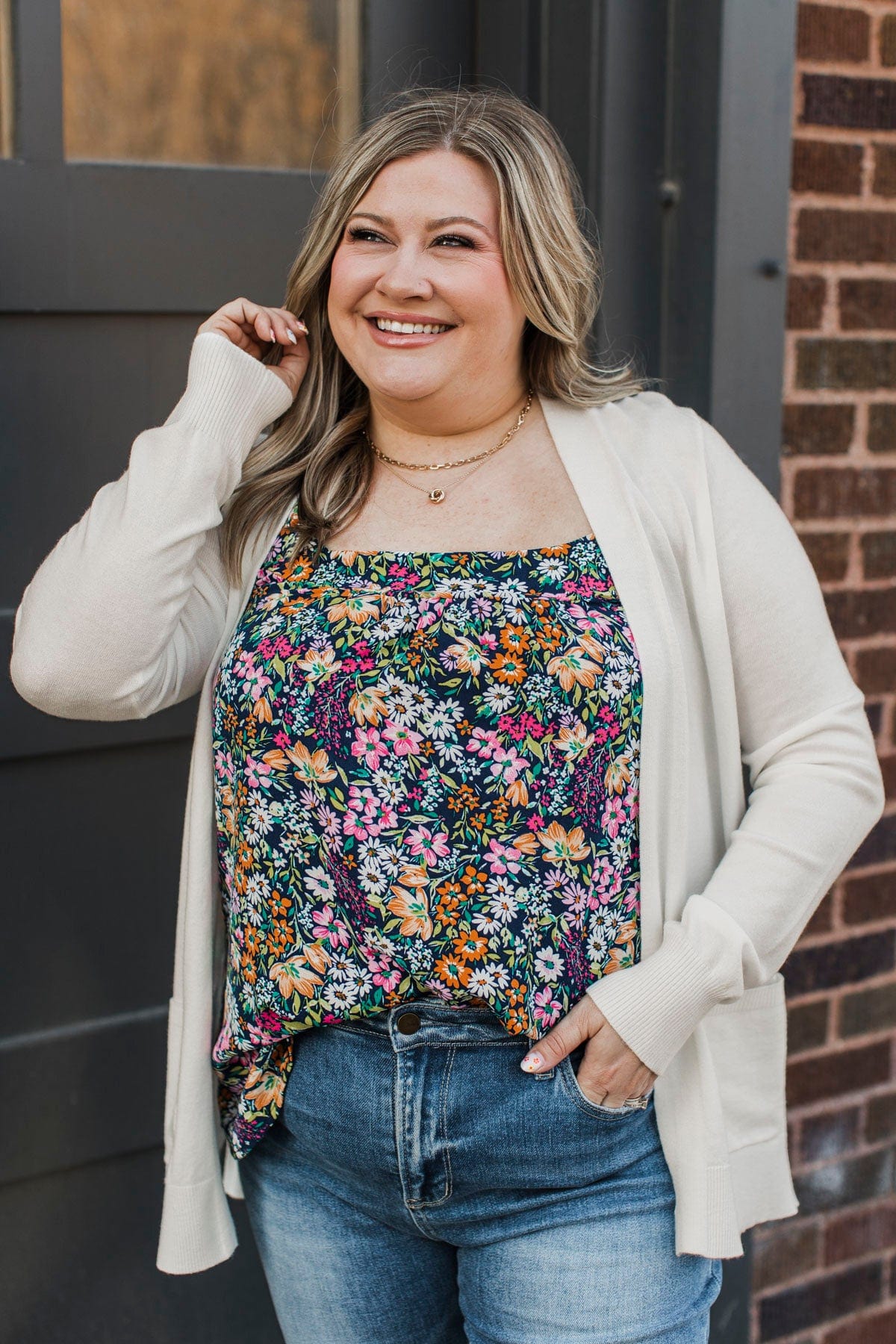 Romance In Bloom Floral Tank Top- Navy
