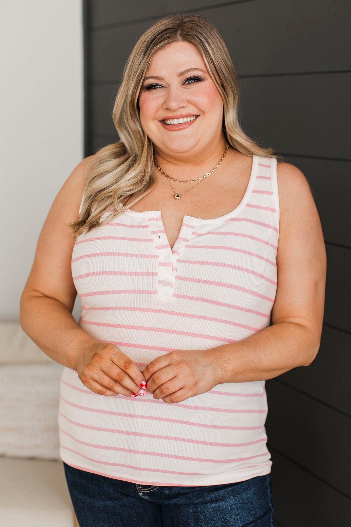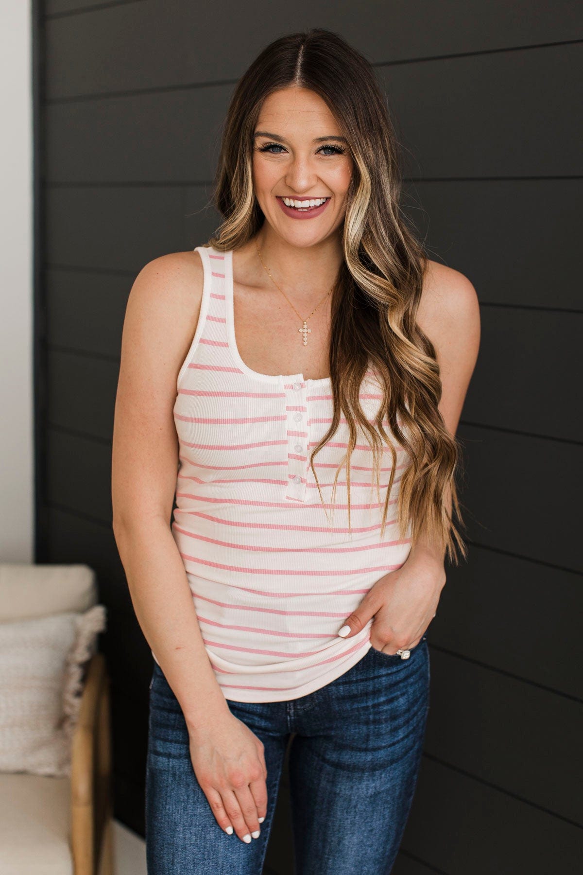 Pleasing Possibilities Striped Tank Top- Ivory & Pink