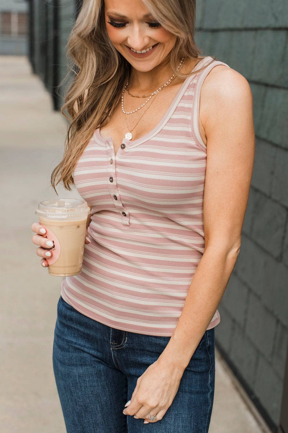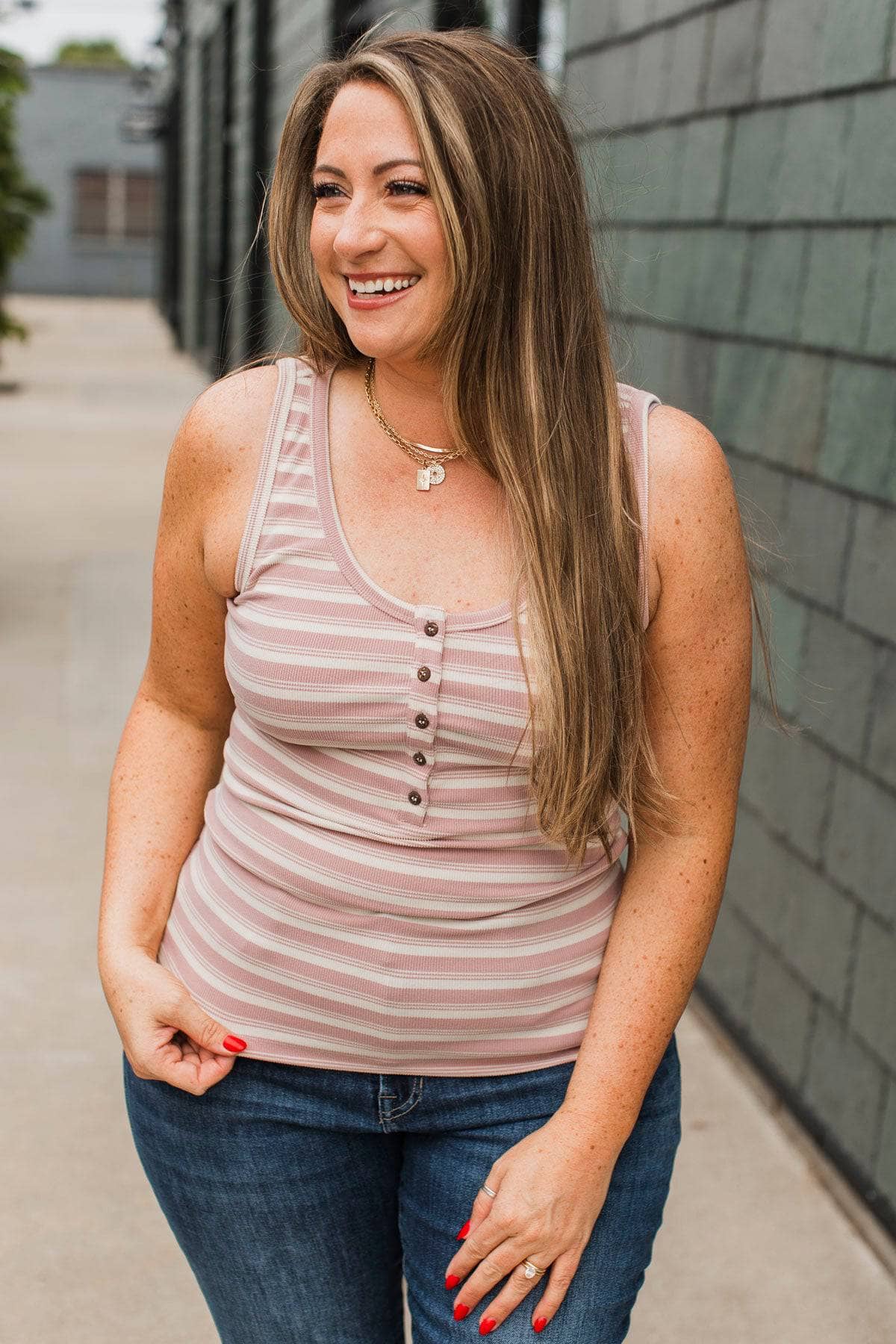 The Best Ever Striped Tank Top- Ivory & Dusty Pink