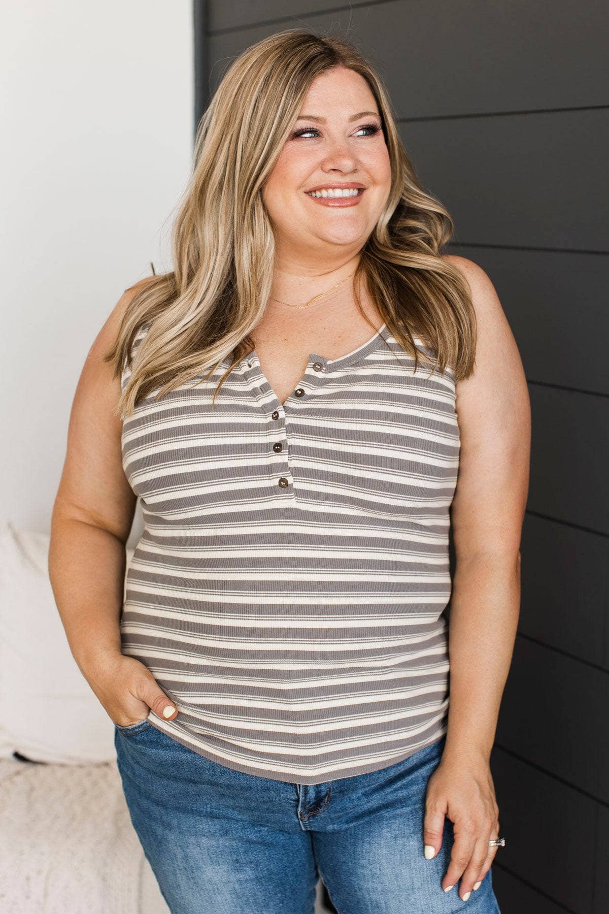 The Best Ever Striped Tank Top- Ivory & Dark Grey