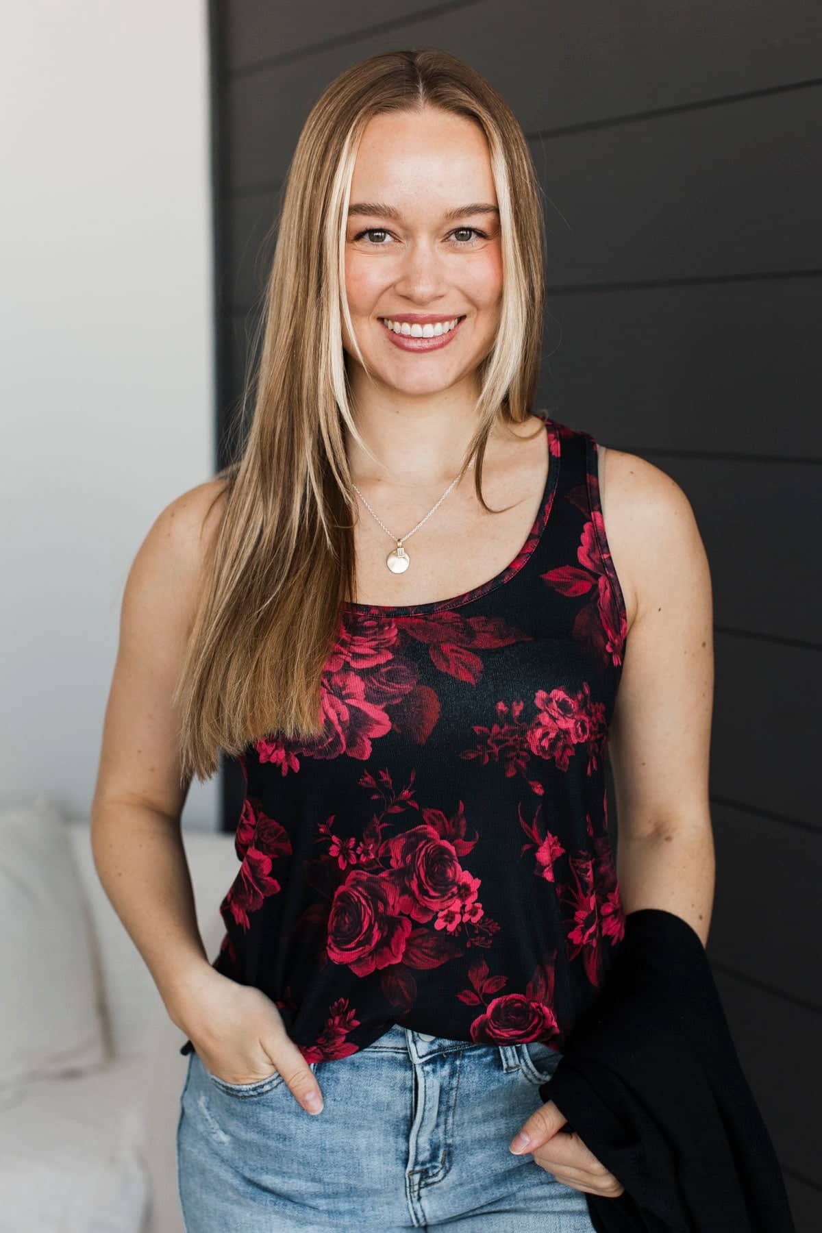Heart Full of Wonder Floral Tank Top- Black & Red