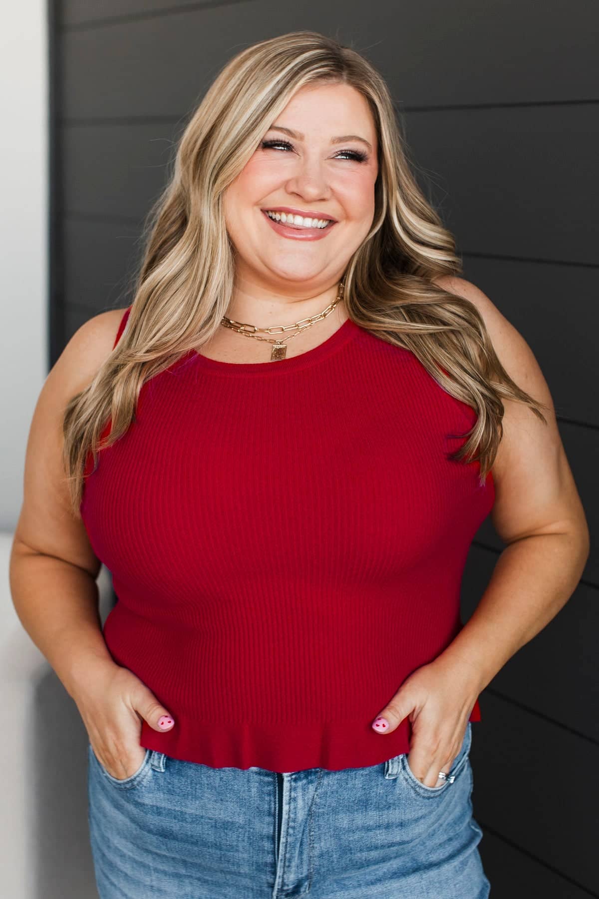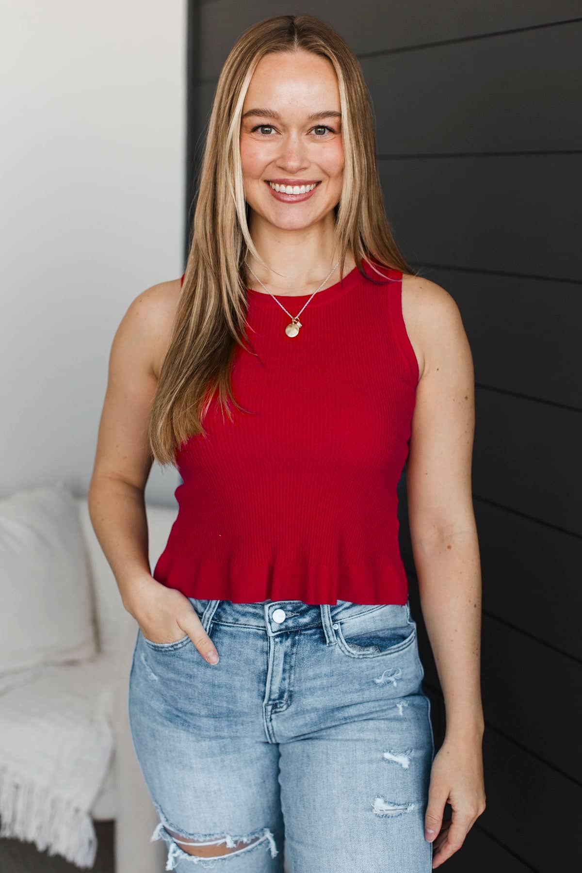 Making Life Great Ribbed Peplum Tank Top- Red