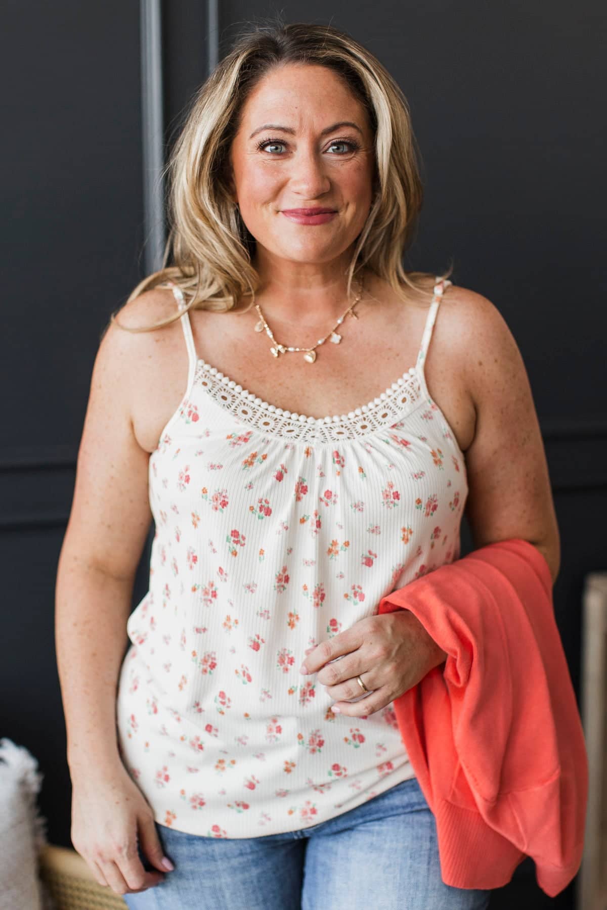 Got Me Blushing Floral Tank Top- Ivory & Coral