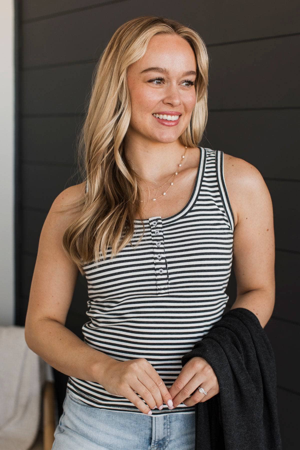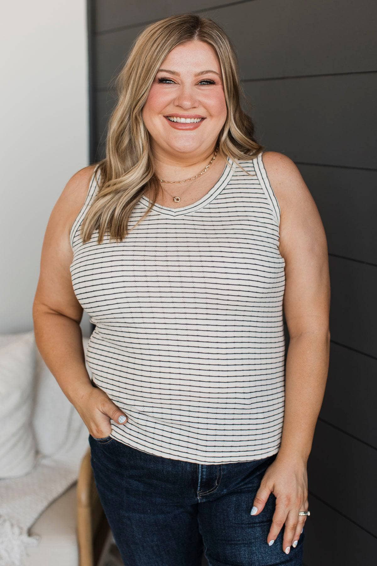 Welcoming Smiles Striped Tank Top- Ivory & Navy