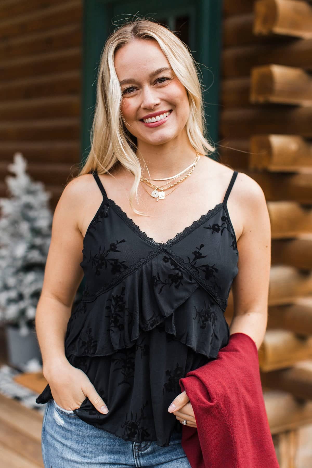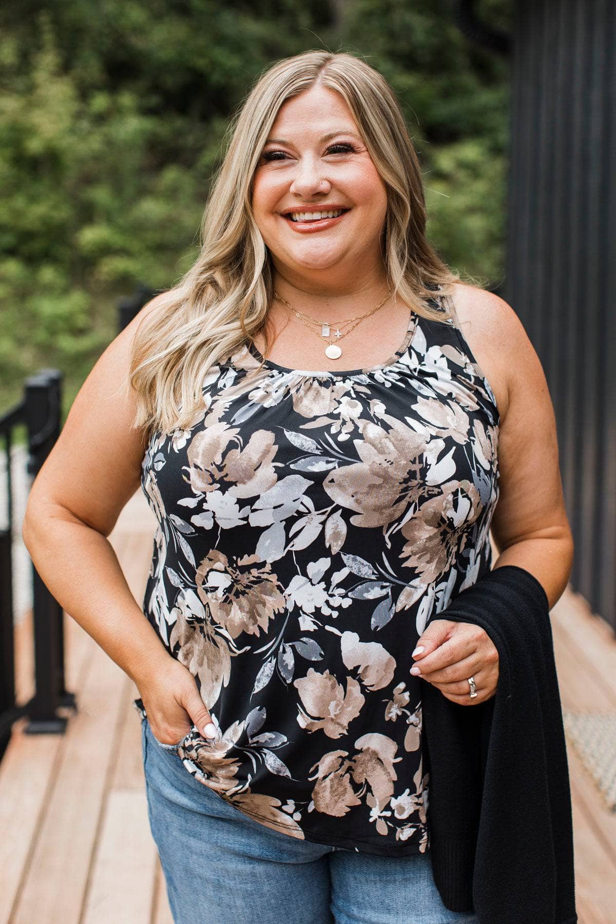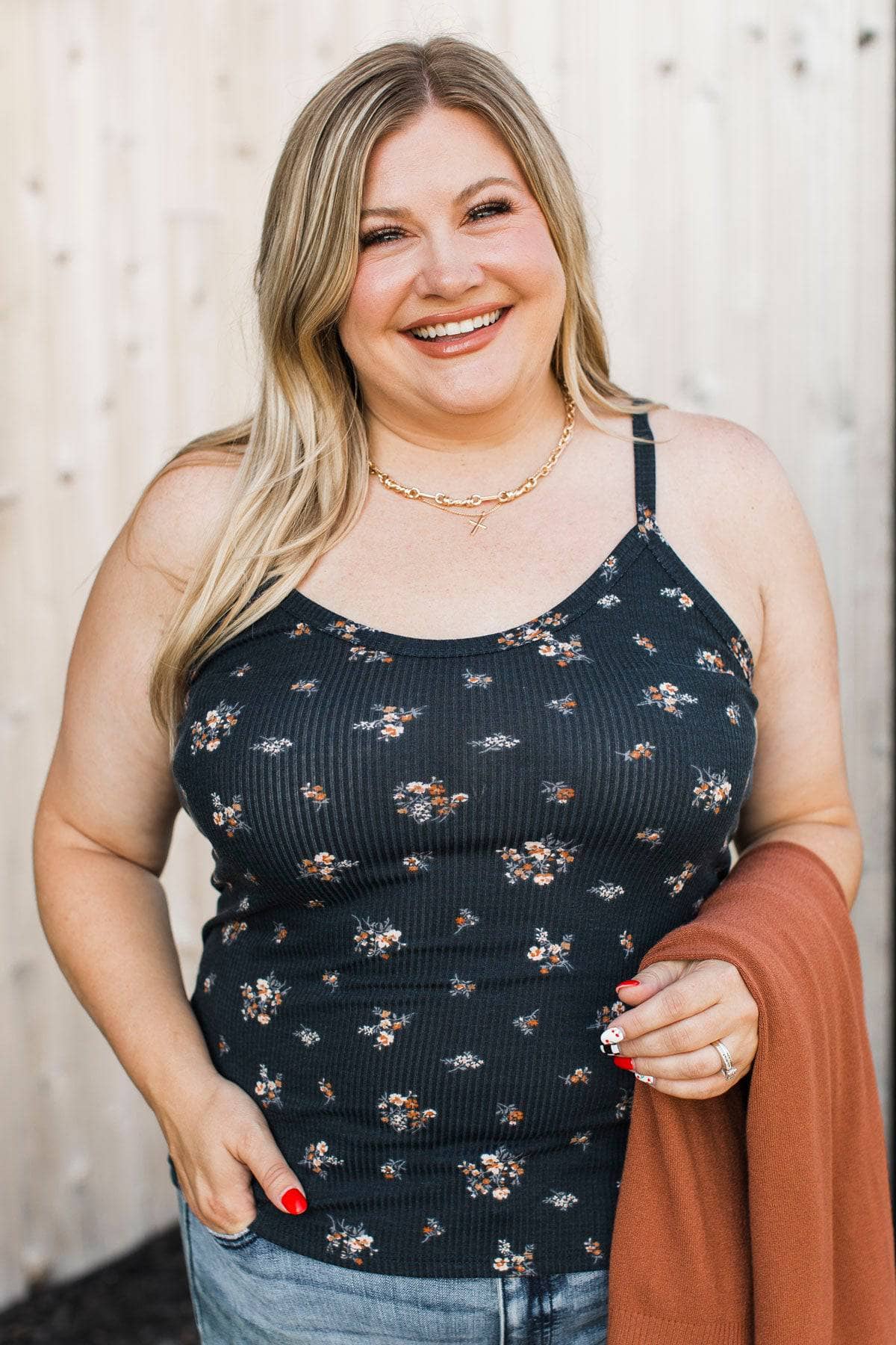 Keep The Magic Alive Floral Velvet Tank Top- Black