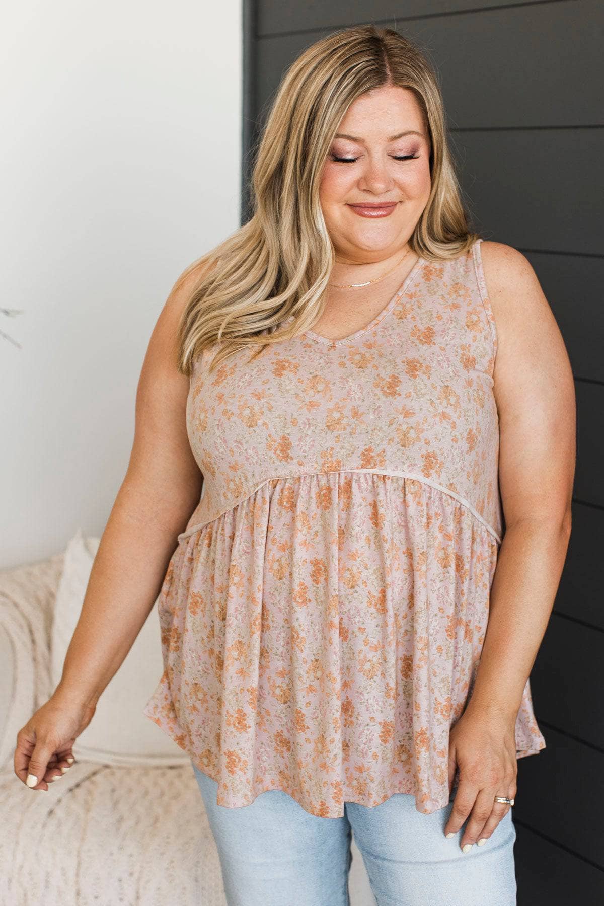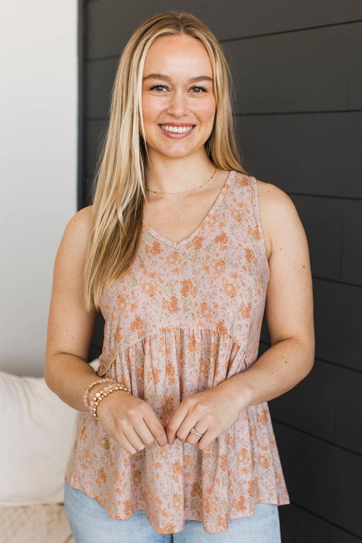 Enchanting Endeavors Floral Babydoll Tank Top- Dusty Pink