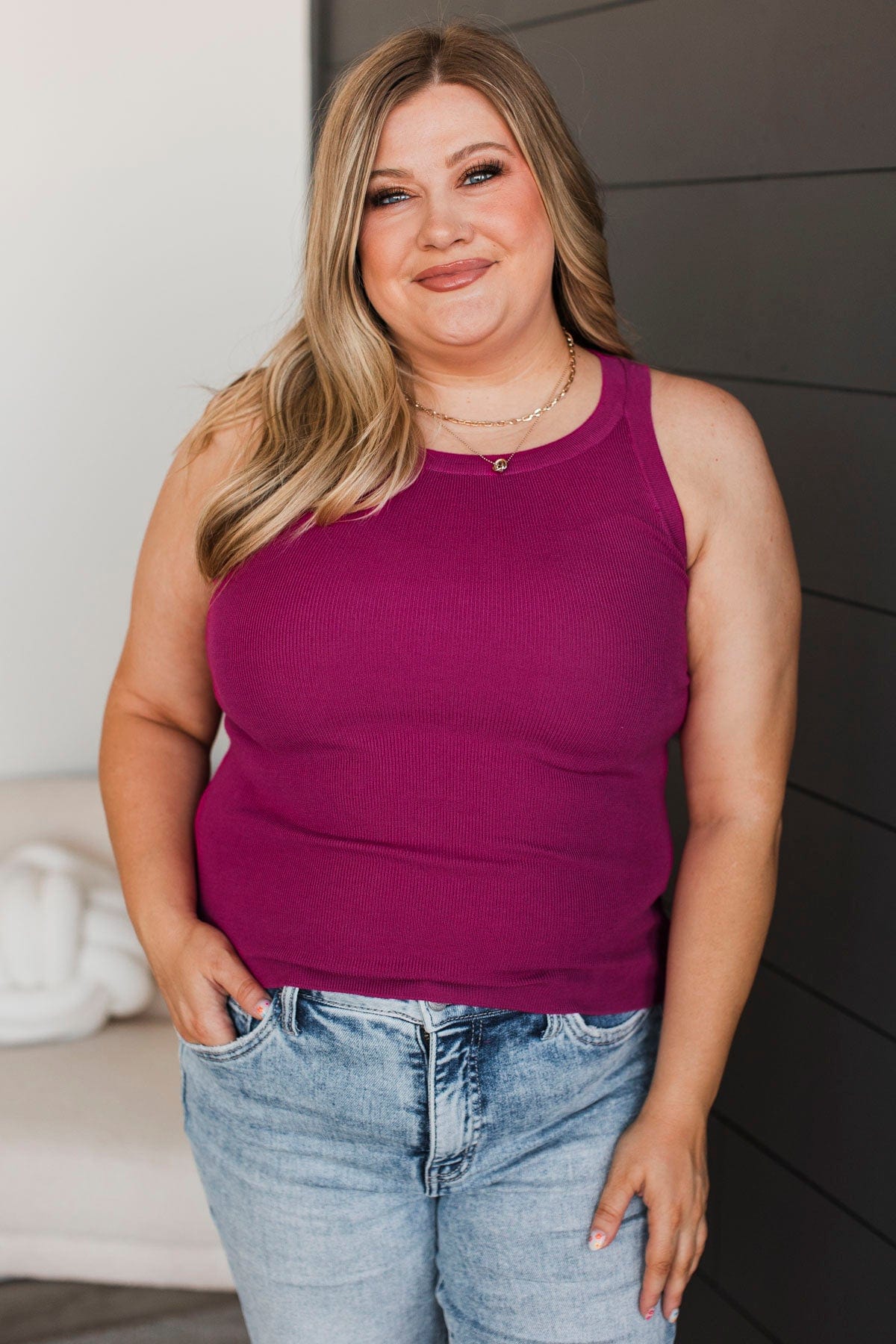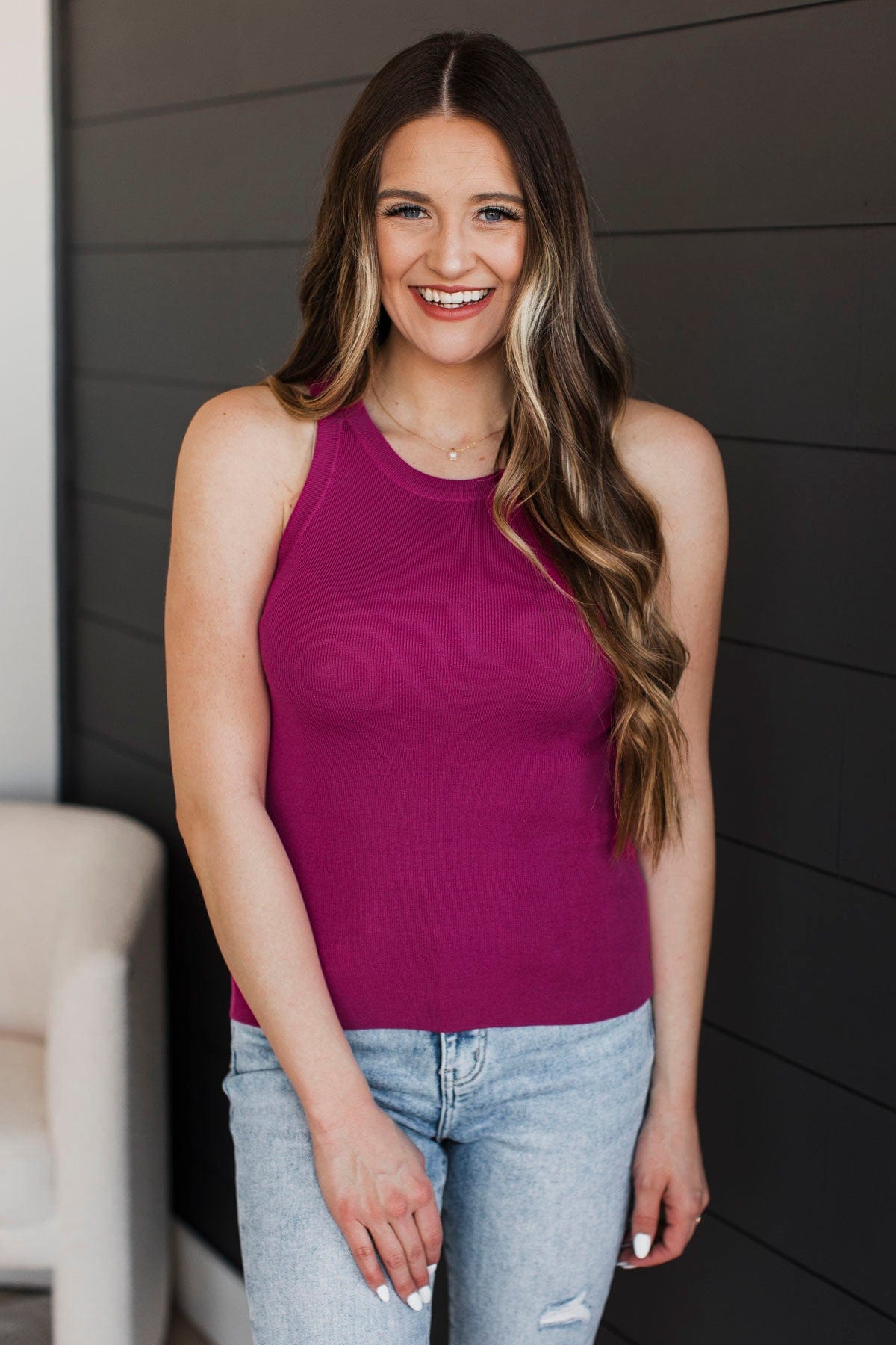 Undeniably Adorable Ribbed Tank Top- Hot Pink