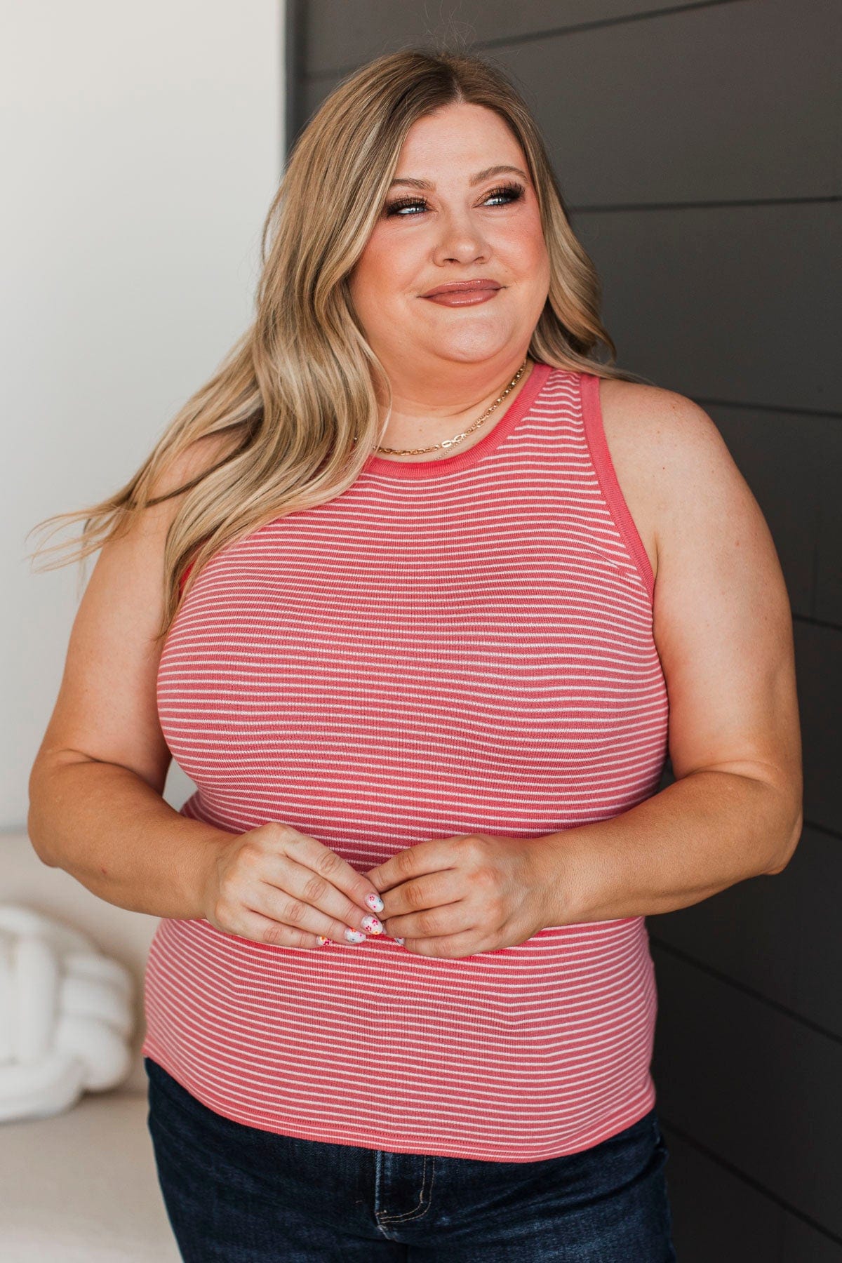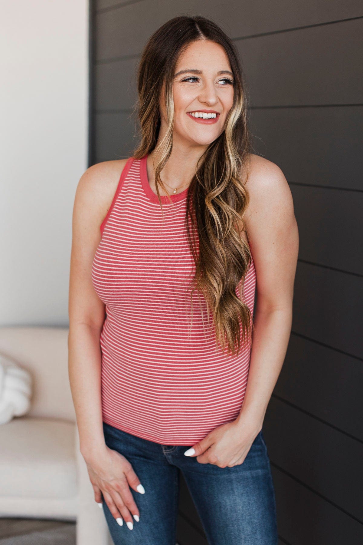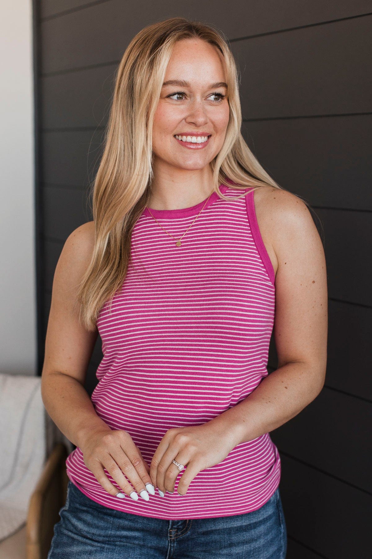 Totally Darling Striped Knit Tank Top- Hot Pink