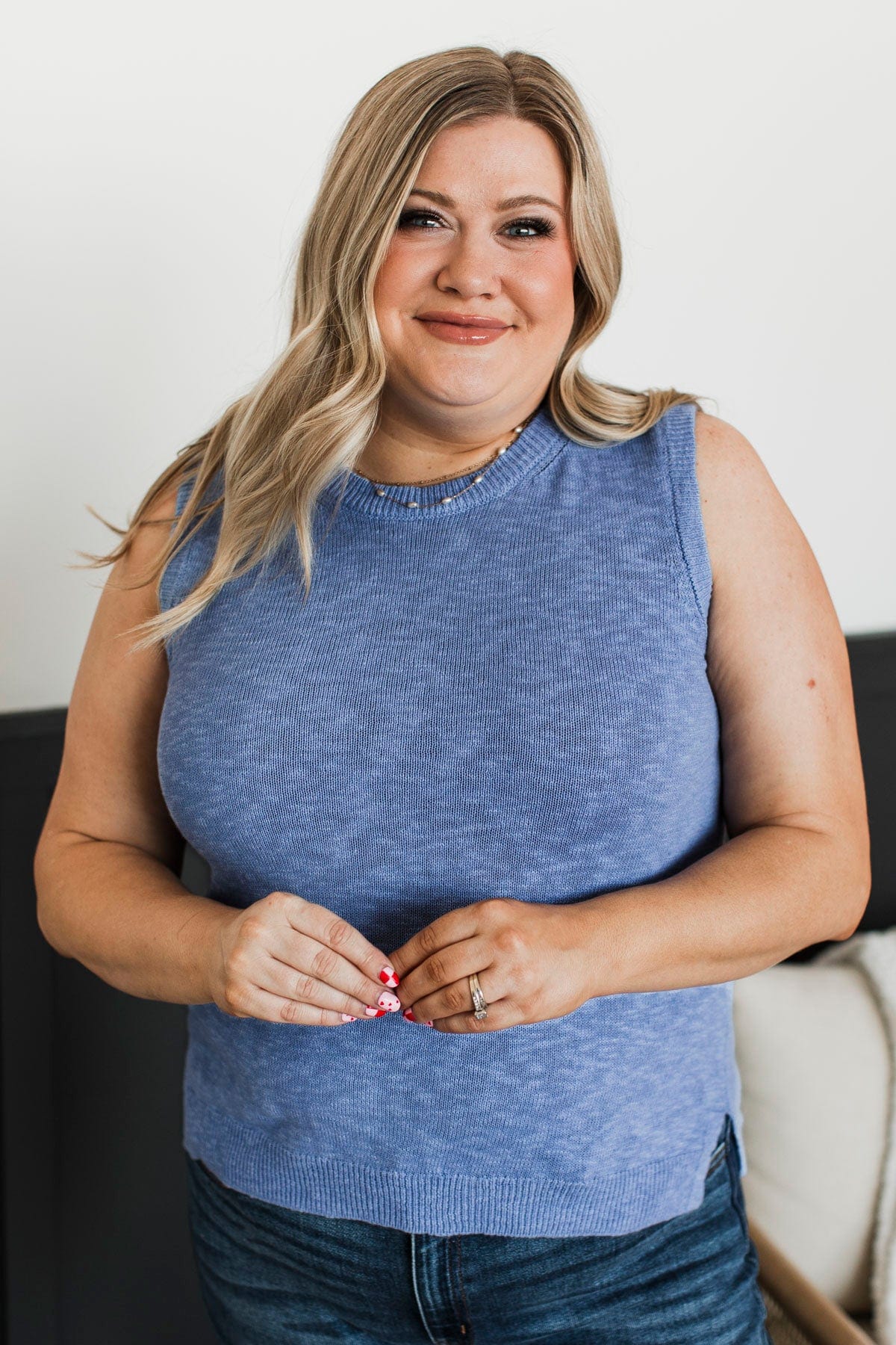 Clever Thoughts Ribbed Tank Top- Dark Denim Blue