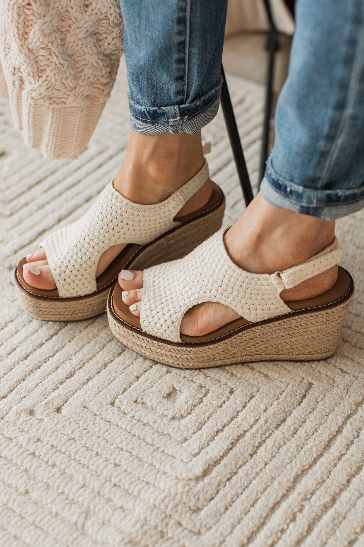 Corky's Freddie Wedge Sandals- Natural Crochet