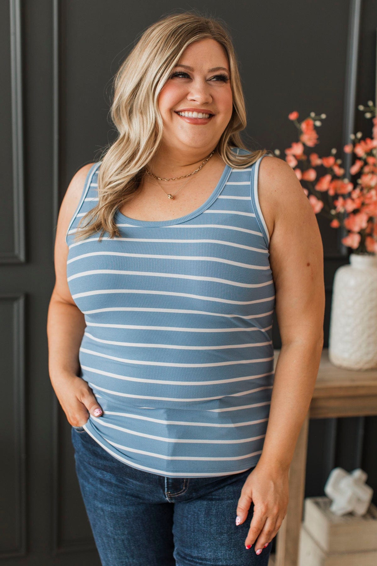 Worth A Shot Ribbed Knit Tank Top- Navy