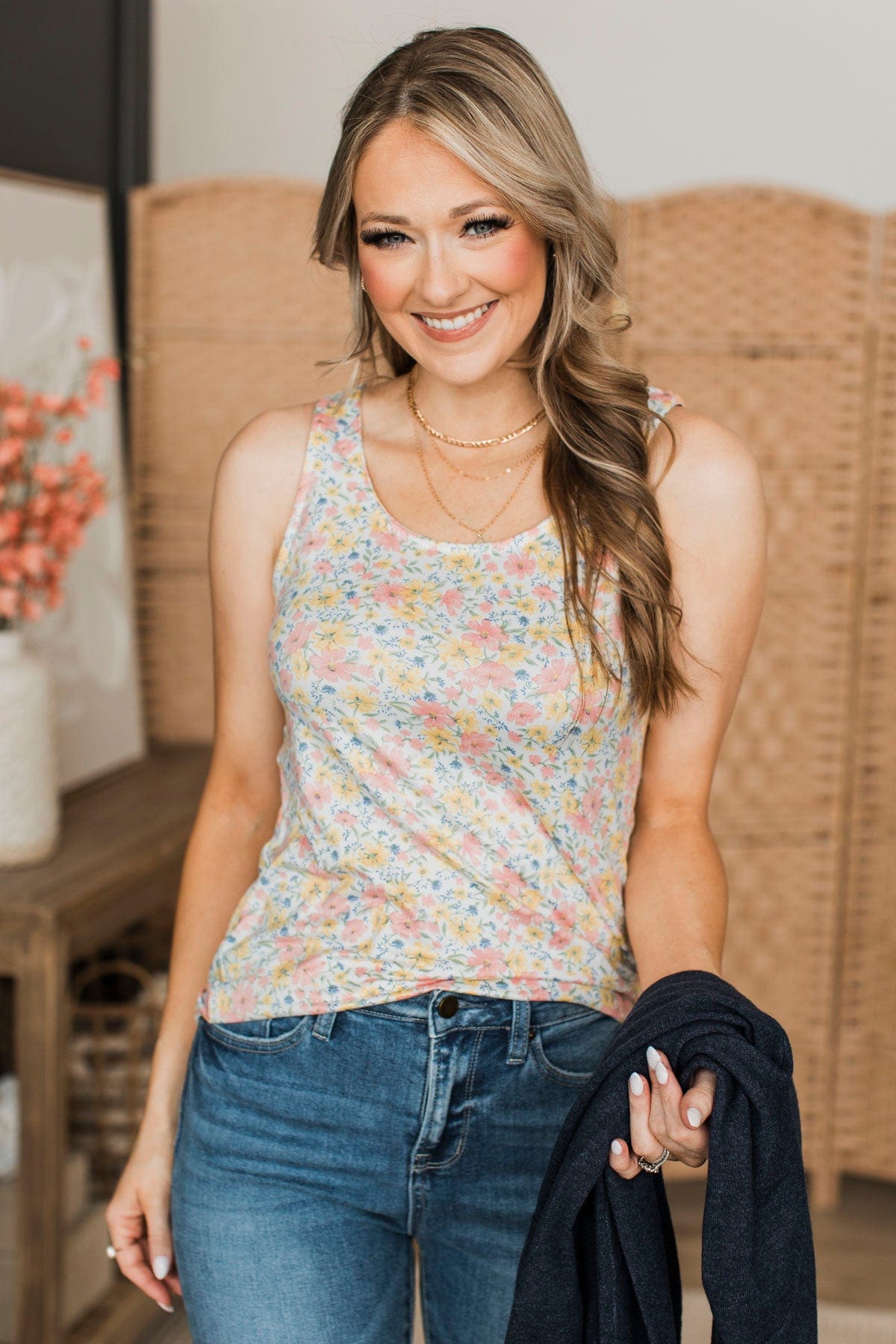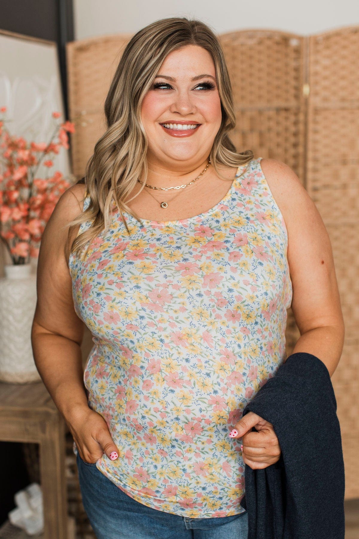 Romantic Ways Ruffle Floral Tank Top- Off-White