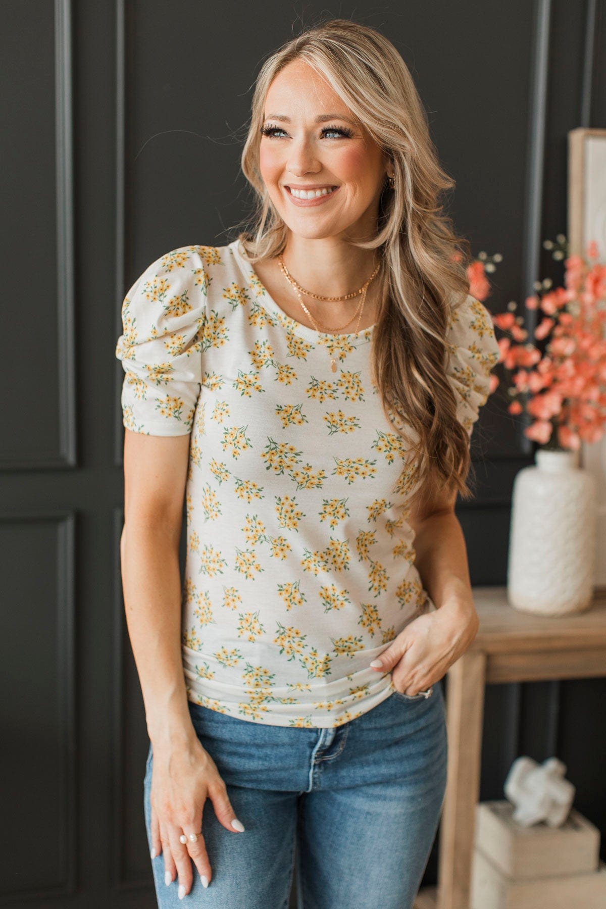 Unbelievably Devoted Floral Top- Off-White & Yellow