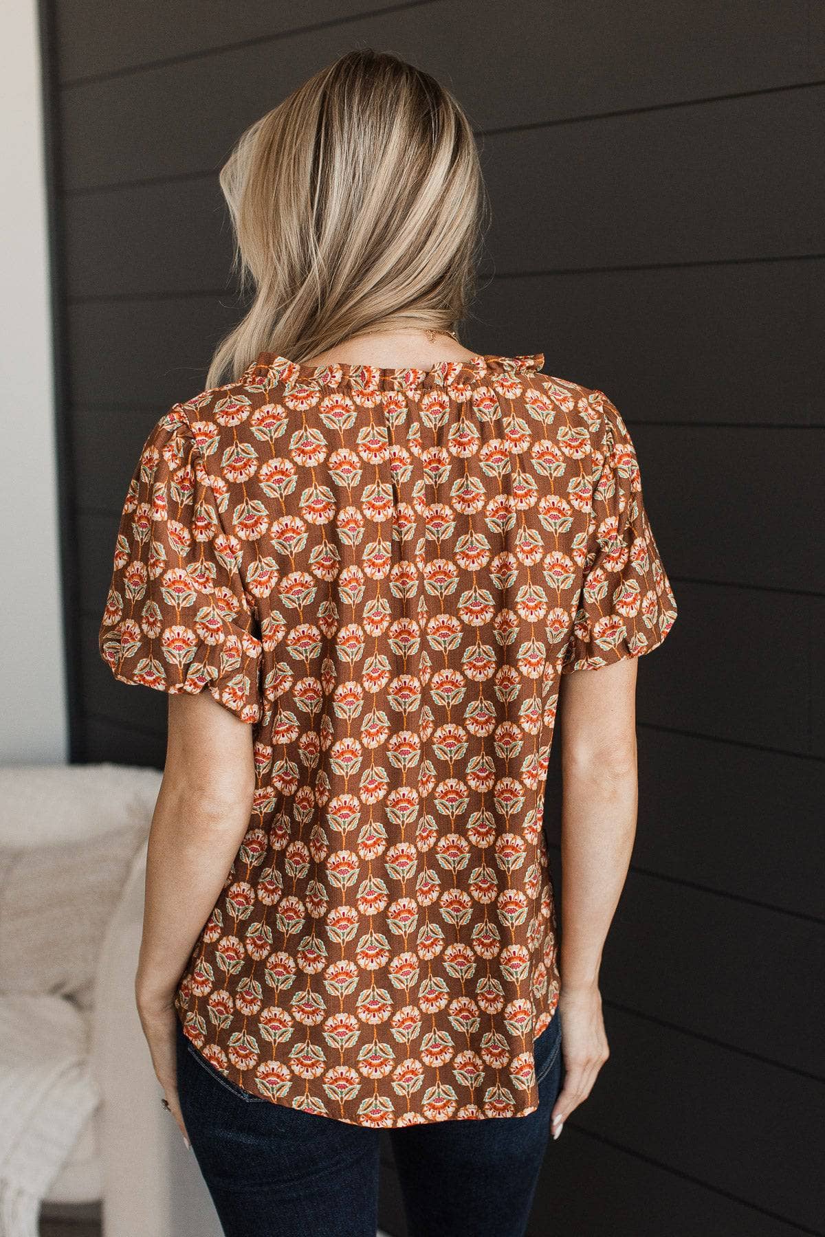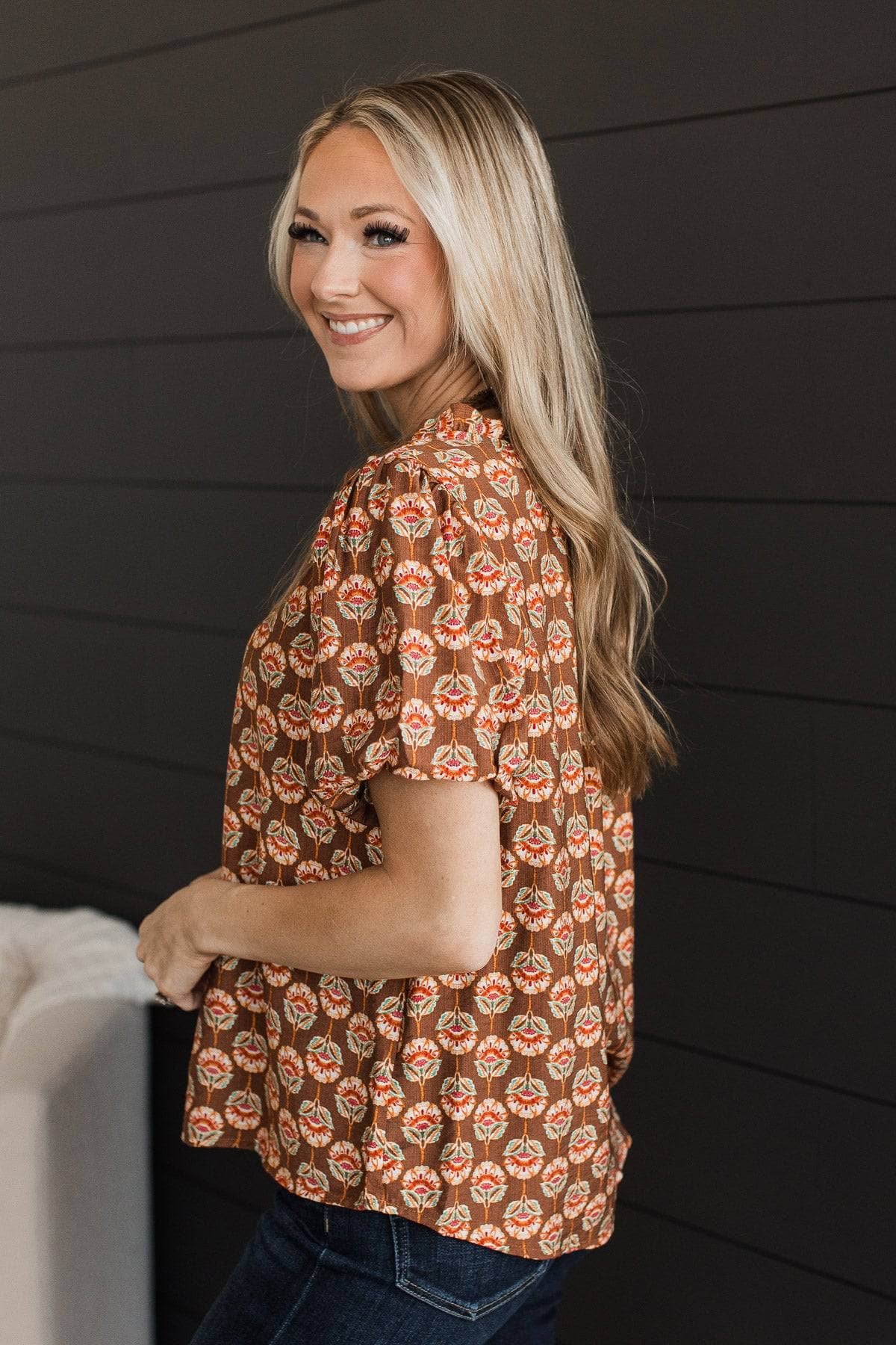 All The Better Floral Blouse- Brown