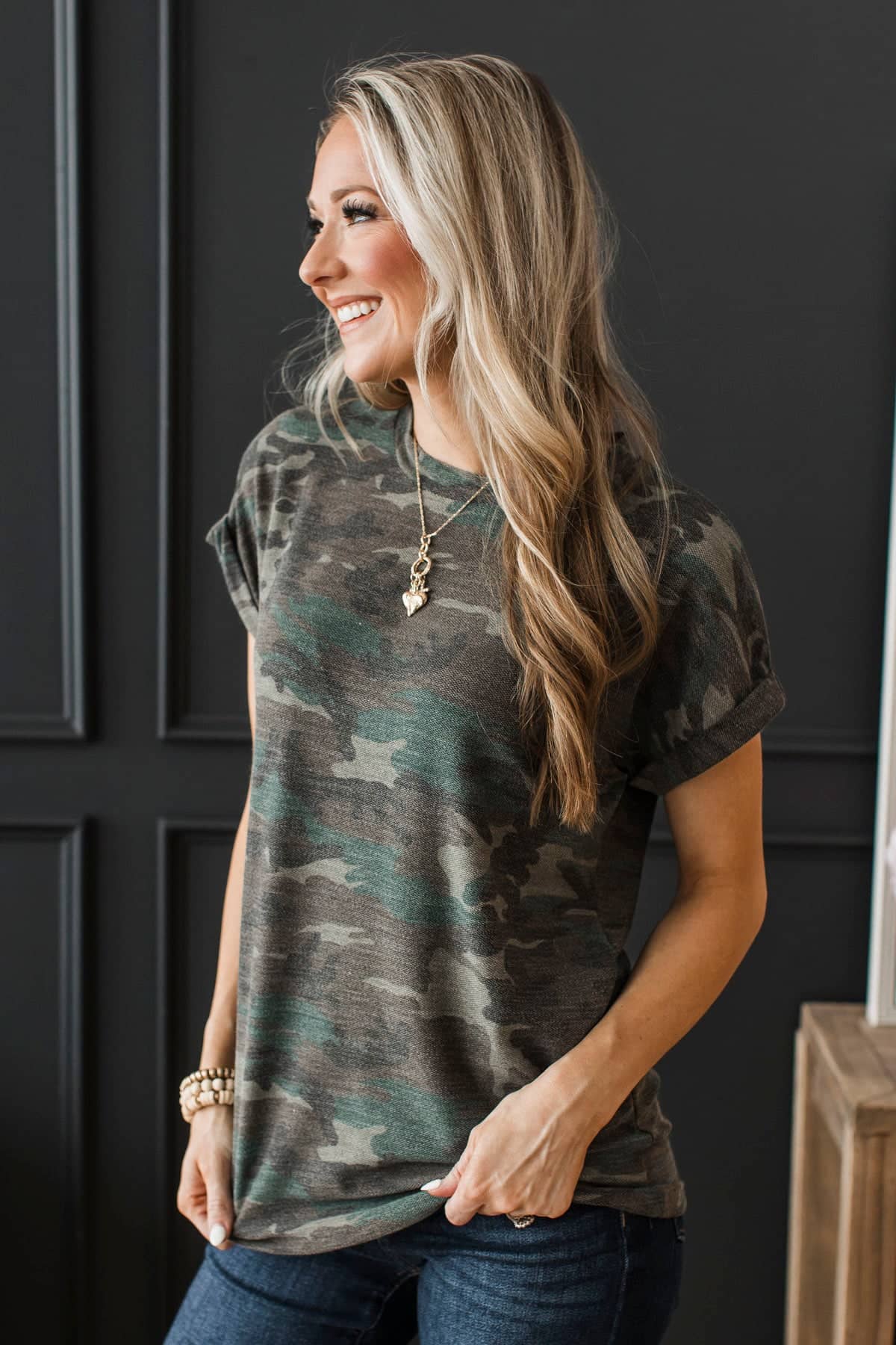 • Lightweight knit material with camo print. **There may be noticeable white threading throughout material. This is part of the material make up and not a defect.