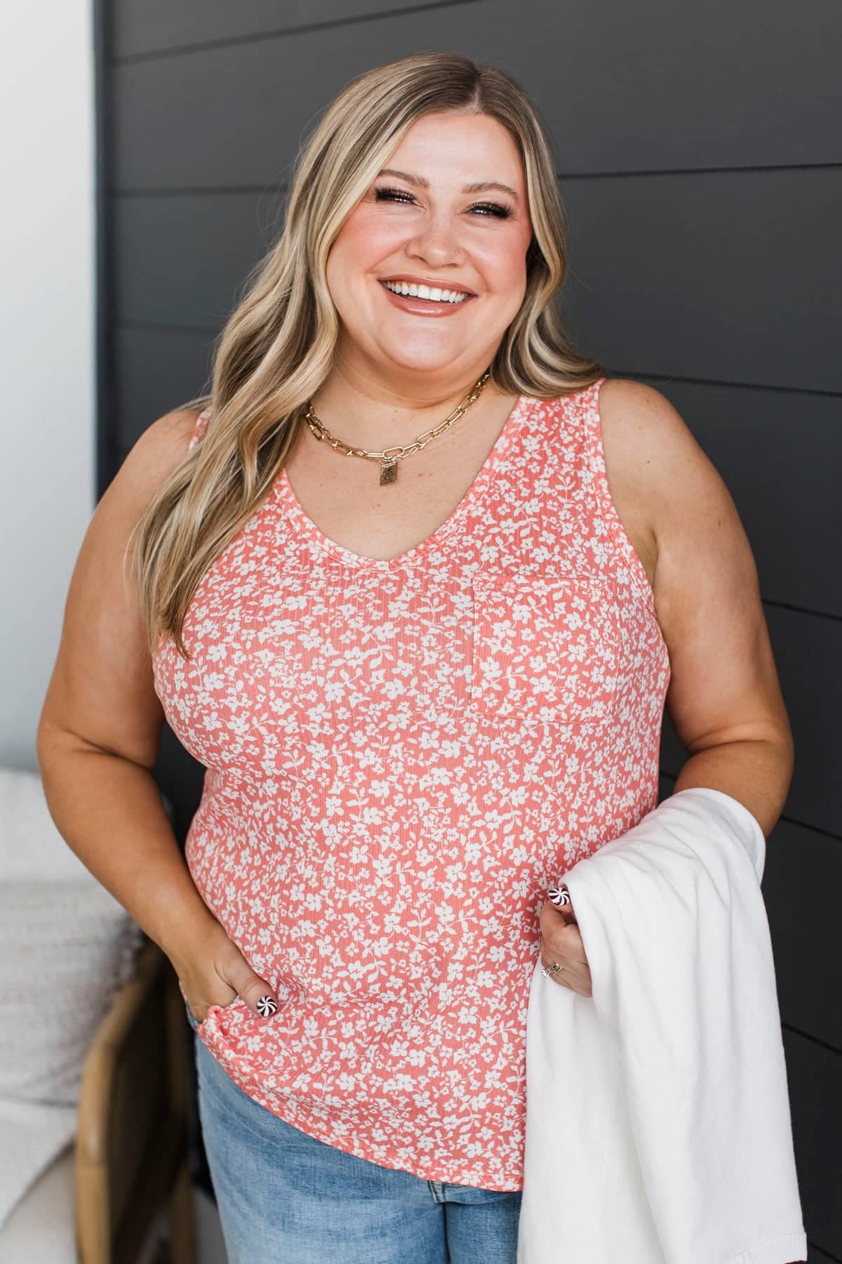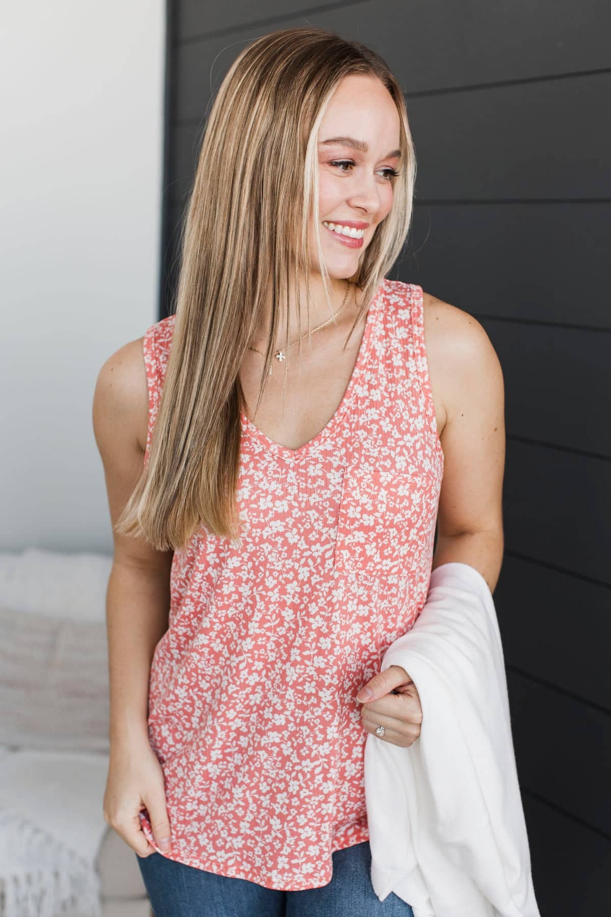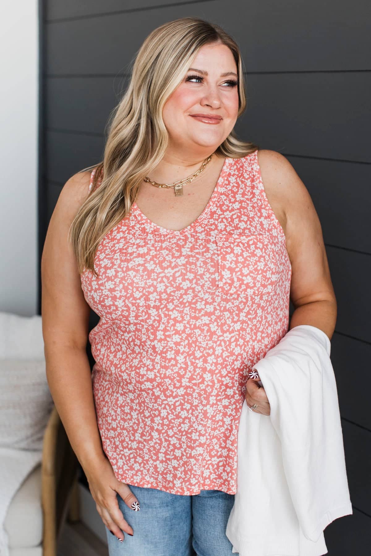 Beyond Words Floral Tank Top- Coral