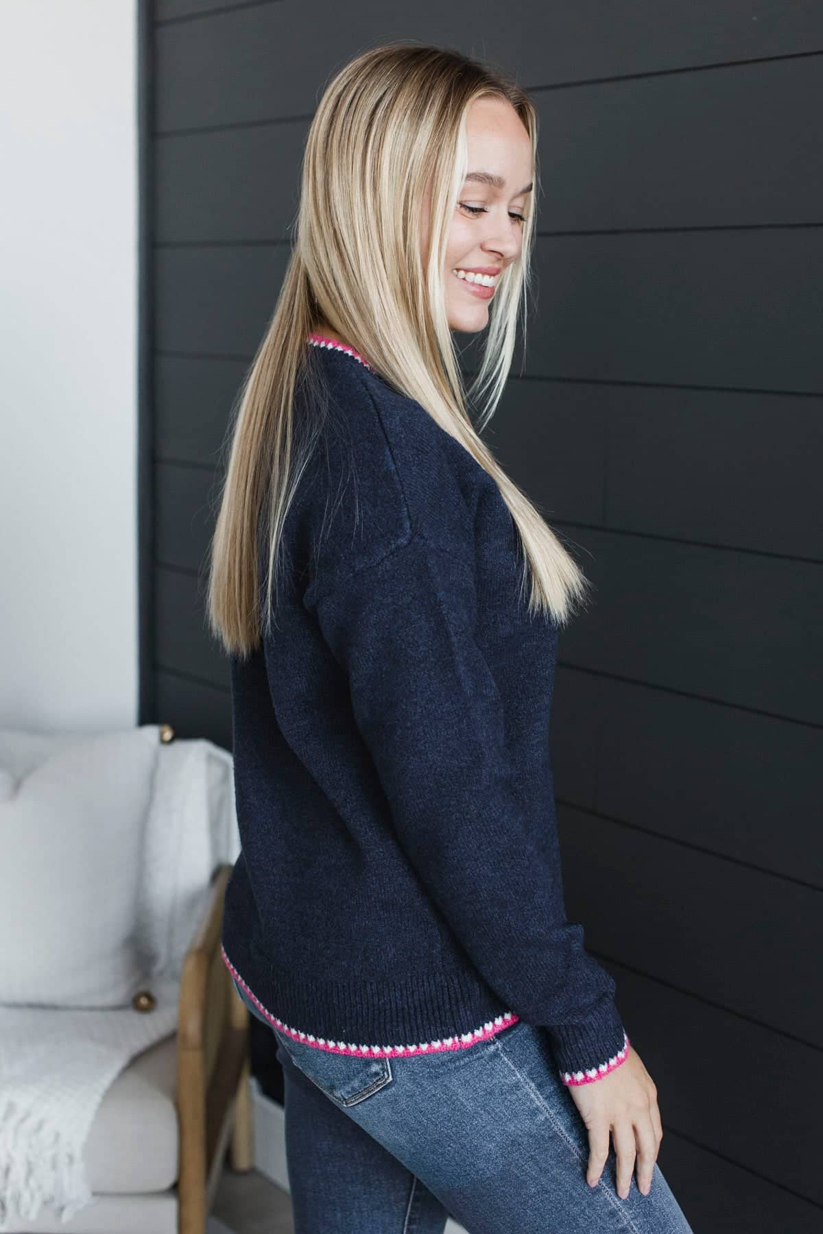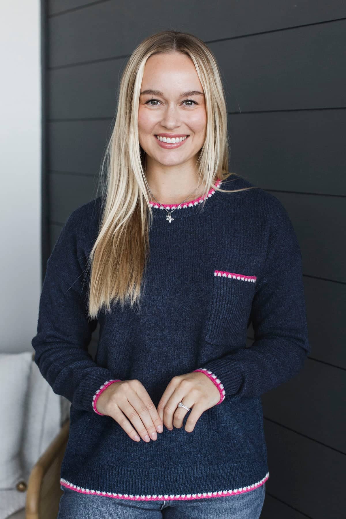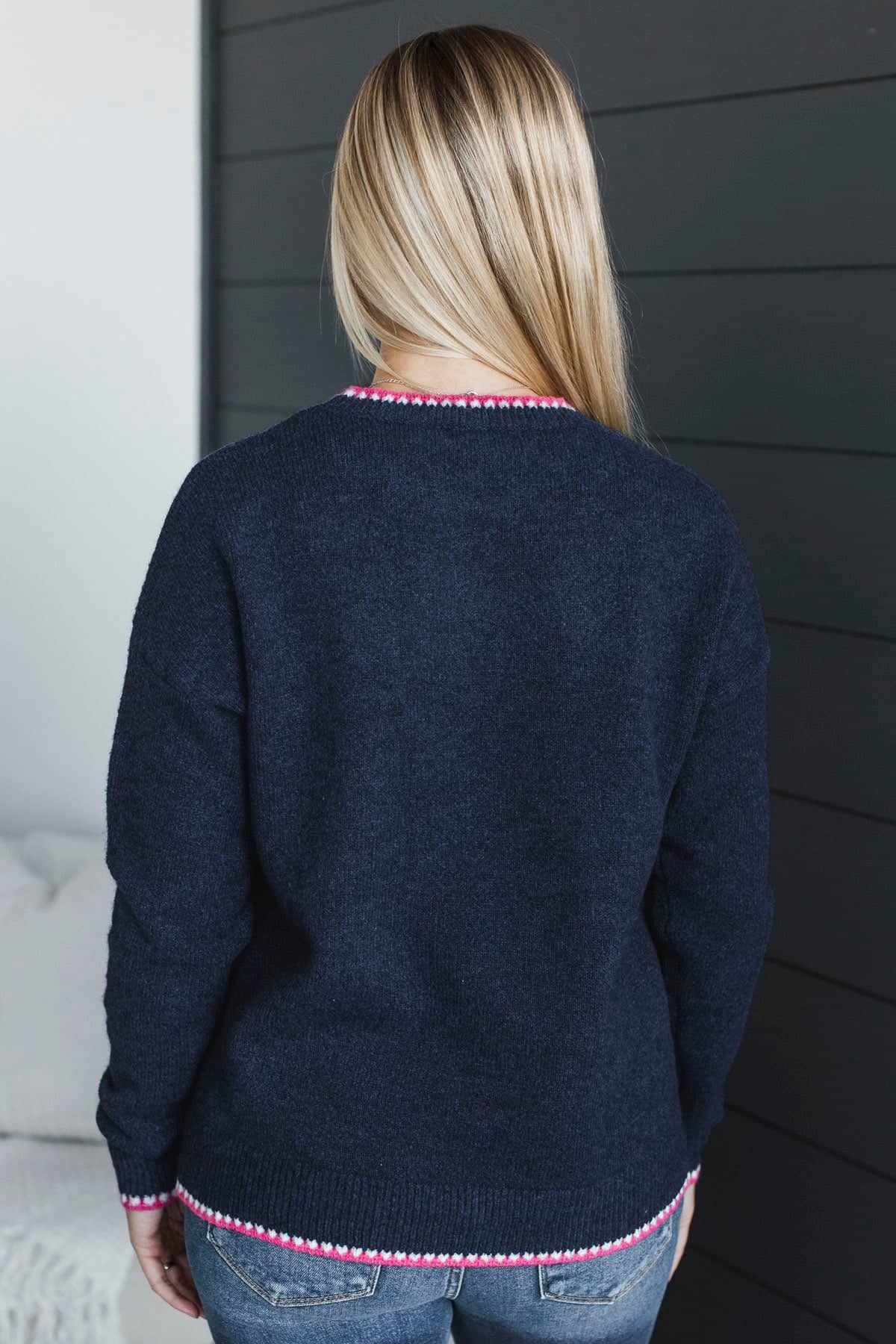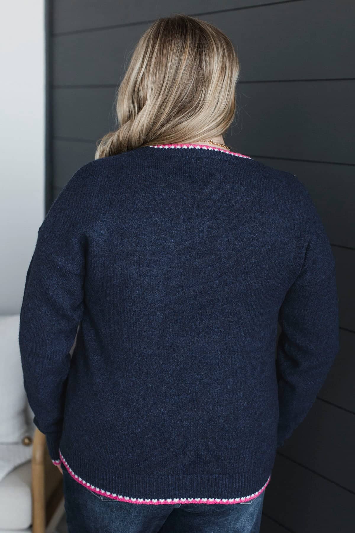 Don't Compare Contrast Knit Sweater- Navy & Pink