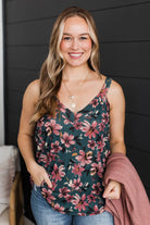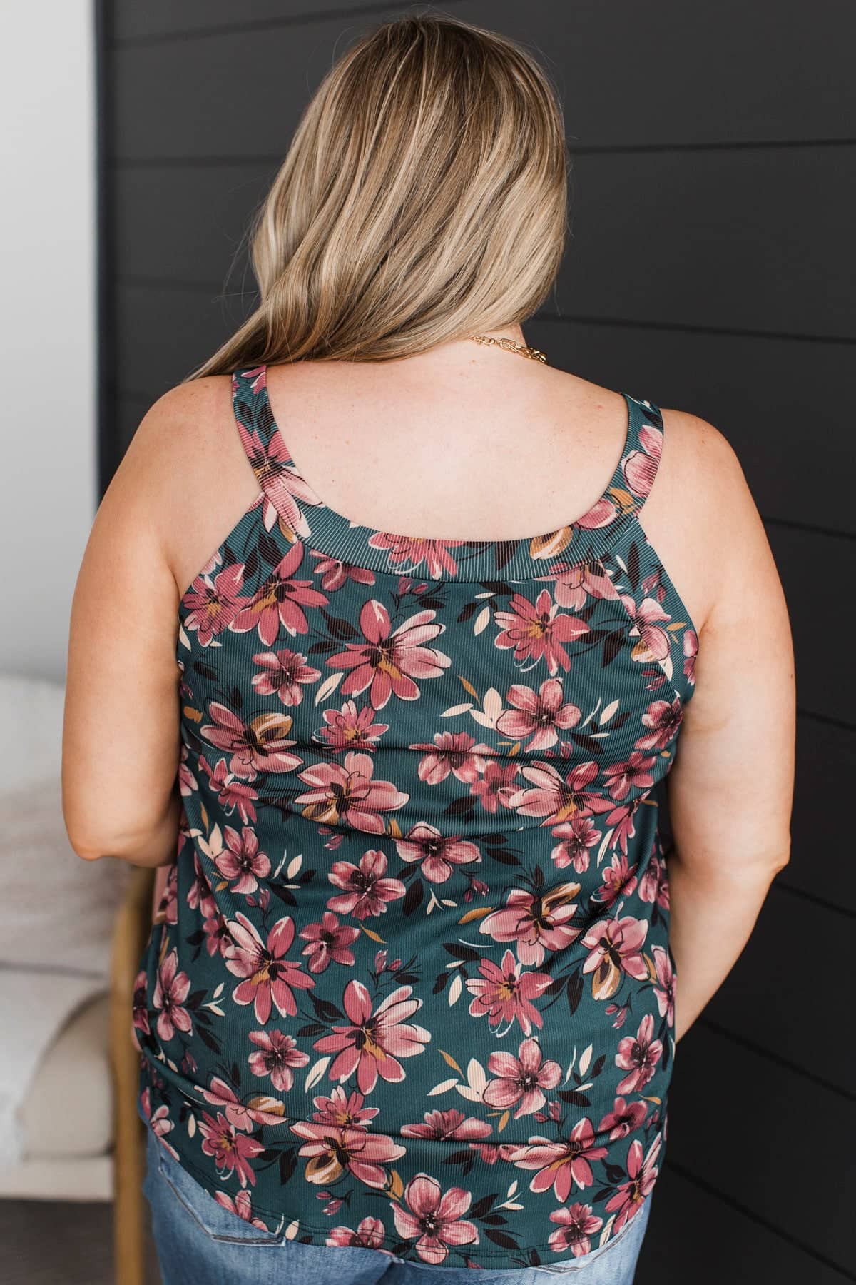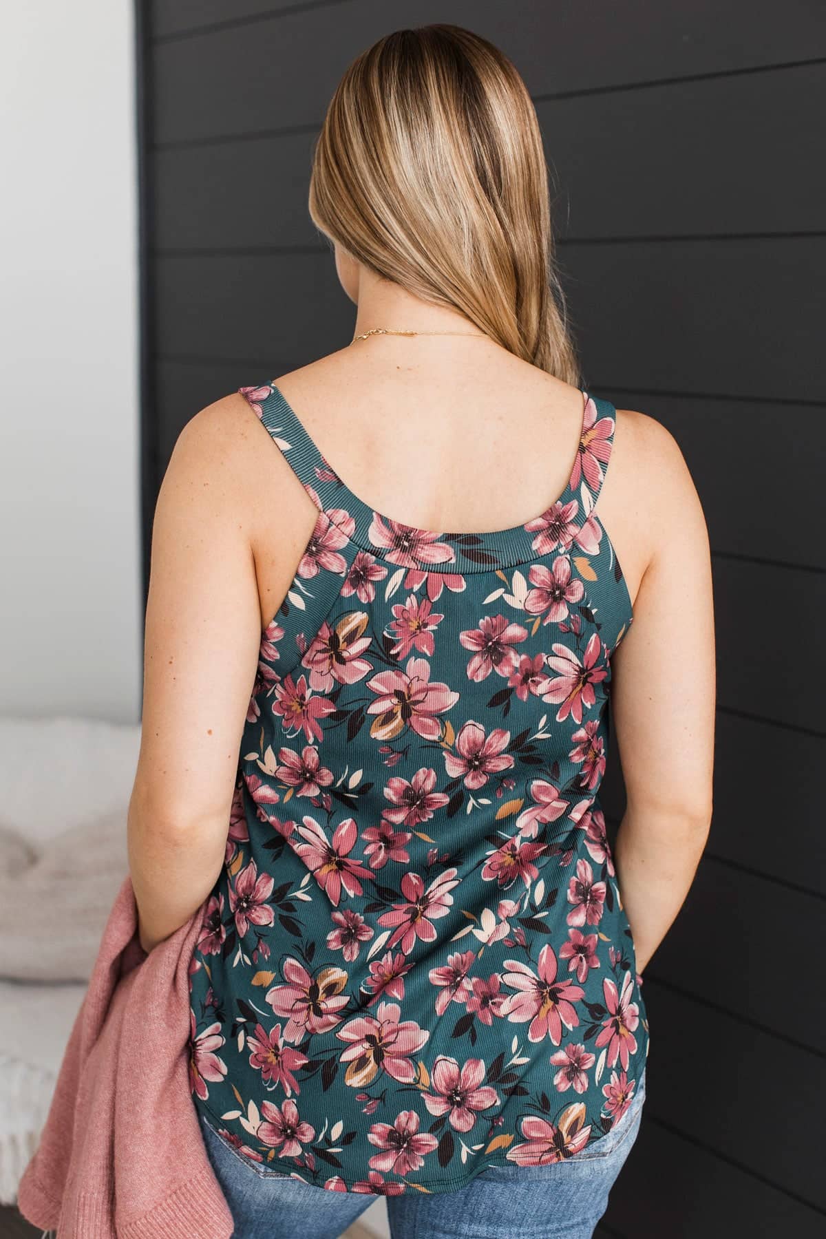 Expressive Smiles V-Neck Floral Tank Top- Teal & Mauve Pink