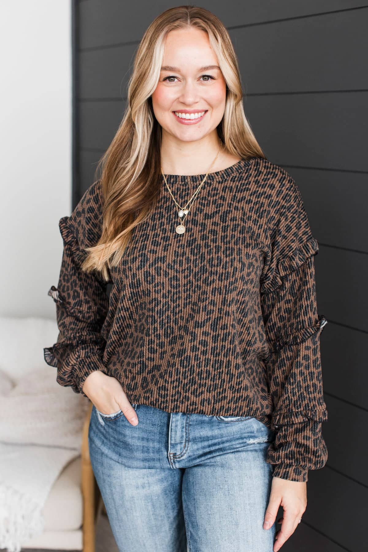 • Drop shoulder sleeves with tiered ruffle trim detailing