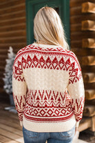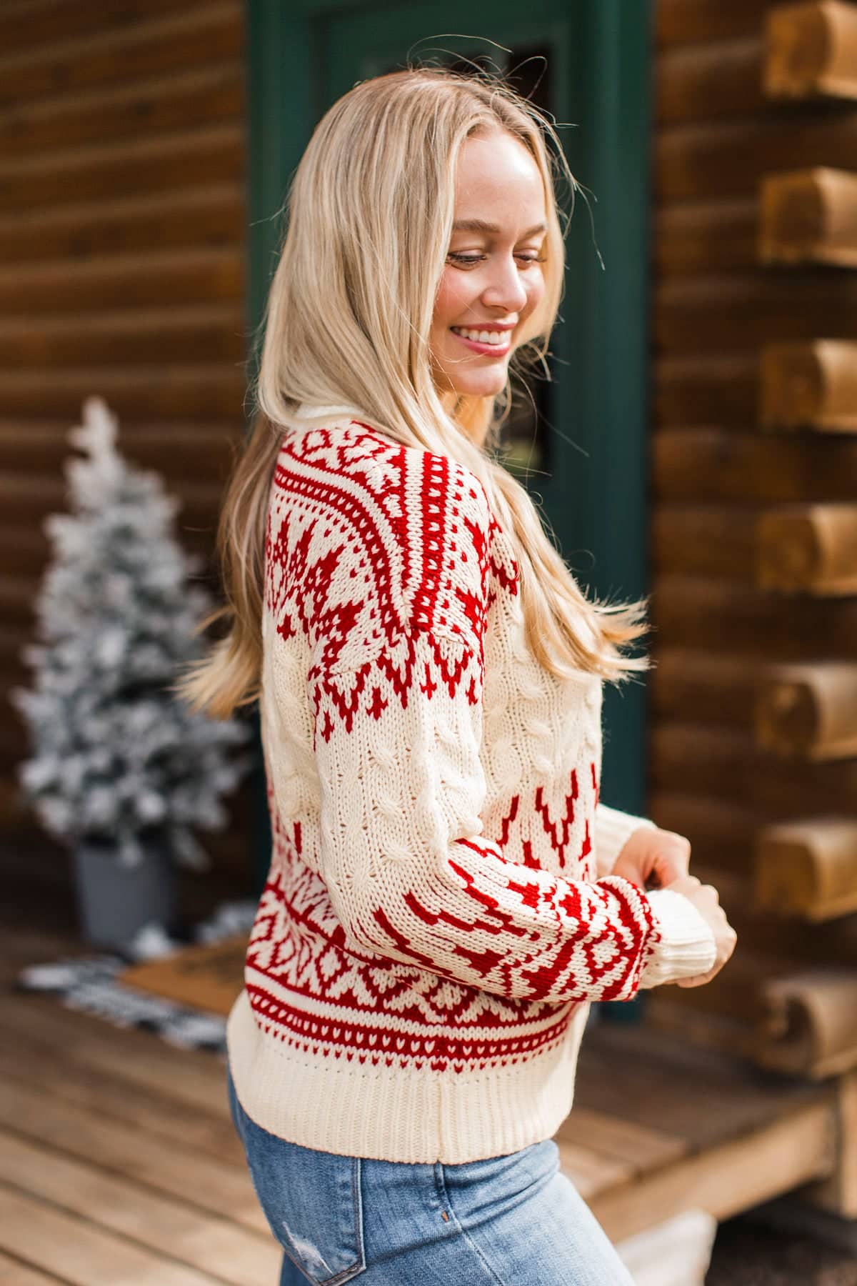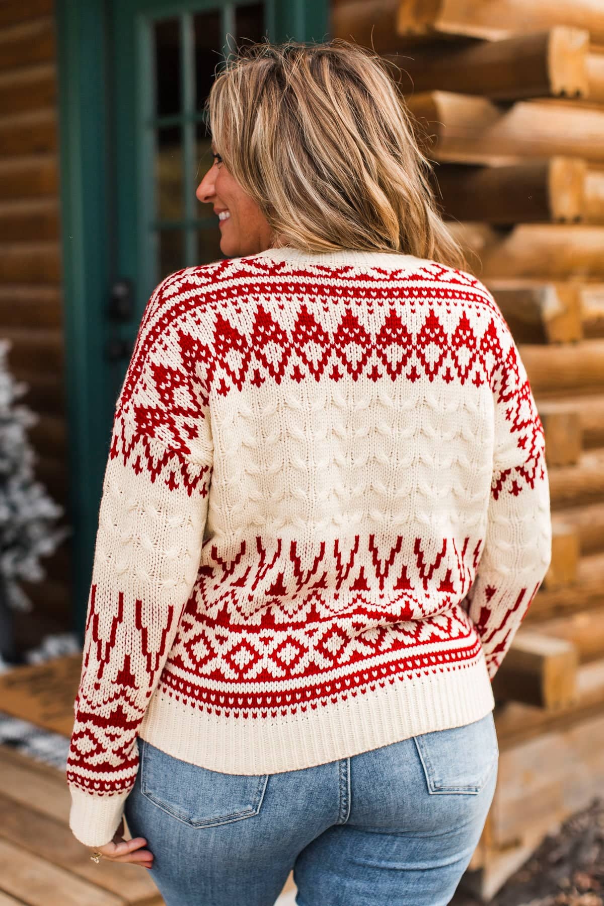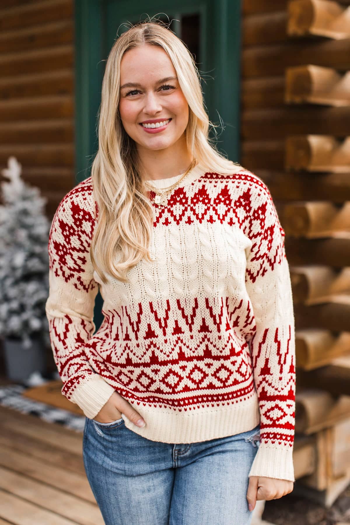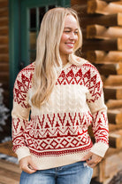 Holiday Festivities Fair Isle Knit Sweater- Cream & Red