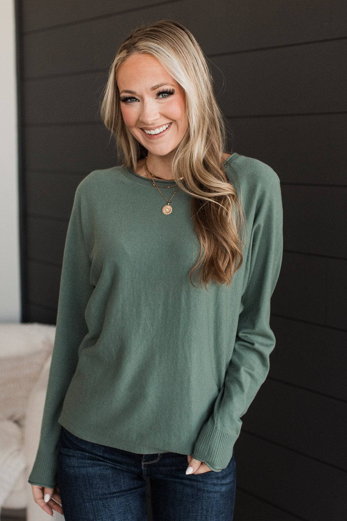 Love Transcends Knit Dolman Sweater- Dusty Jade